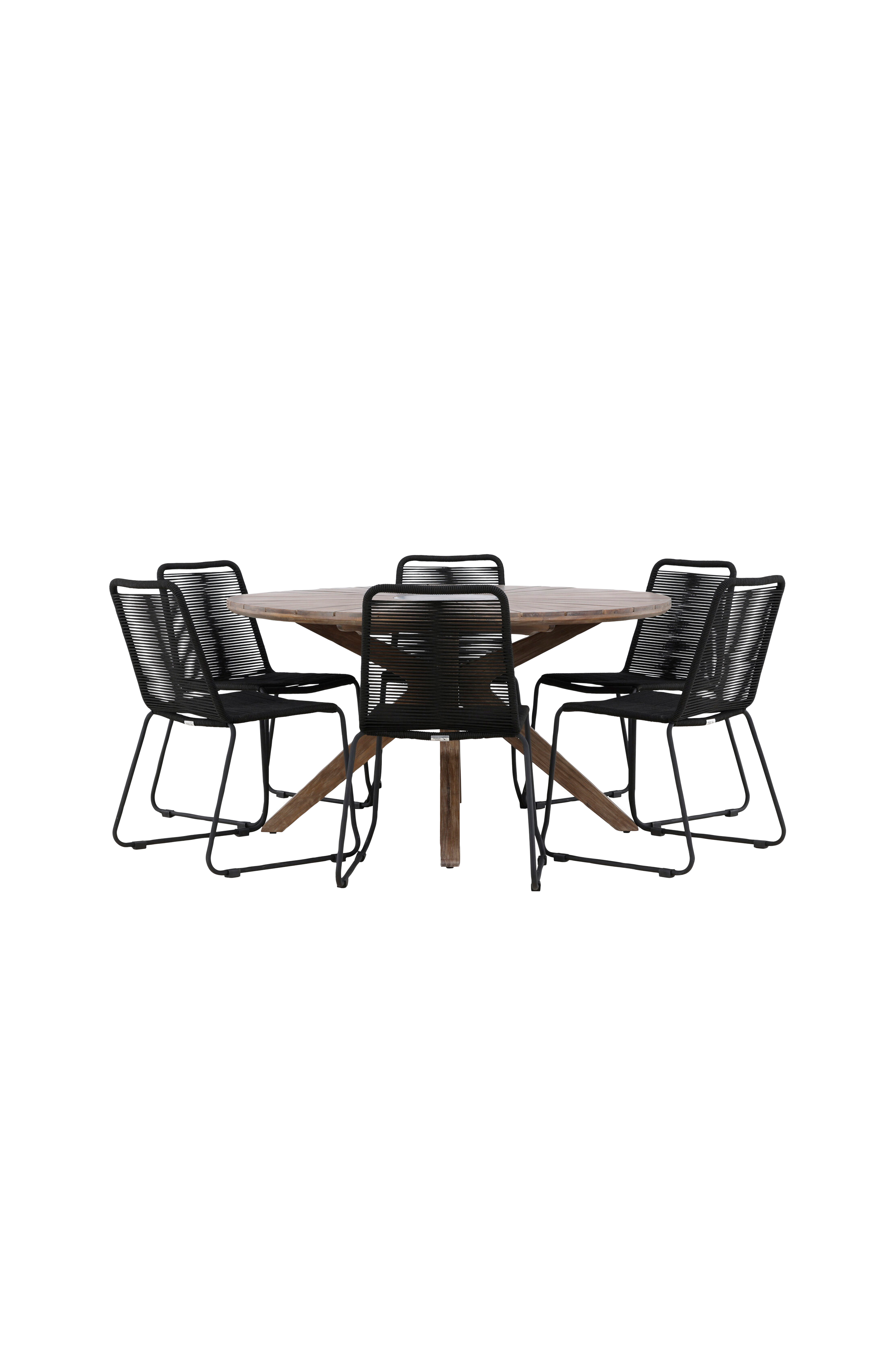 Upptäck den perfekta harmonin mellan modern elegans och tidlös stil med vår matgrupp, som består av sex lindos stolar och det imponerande rosario bordet. Denna matgrupp är utformad för att skapa en atmosfär av avkoppling och kamratskap i ditt utomhusutrymme.