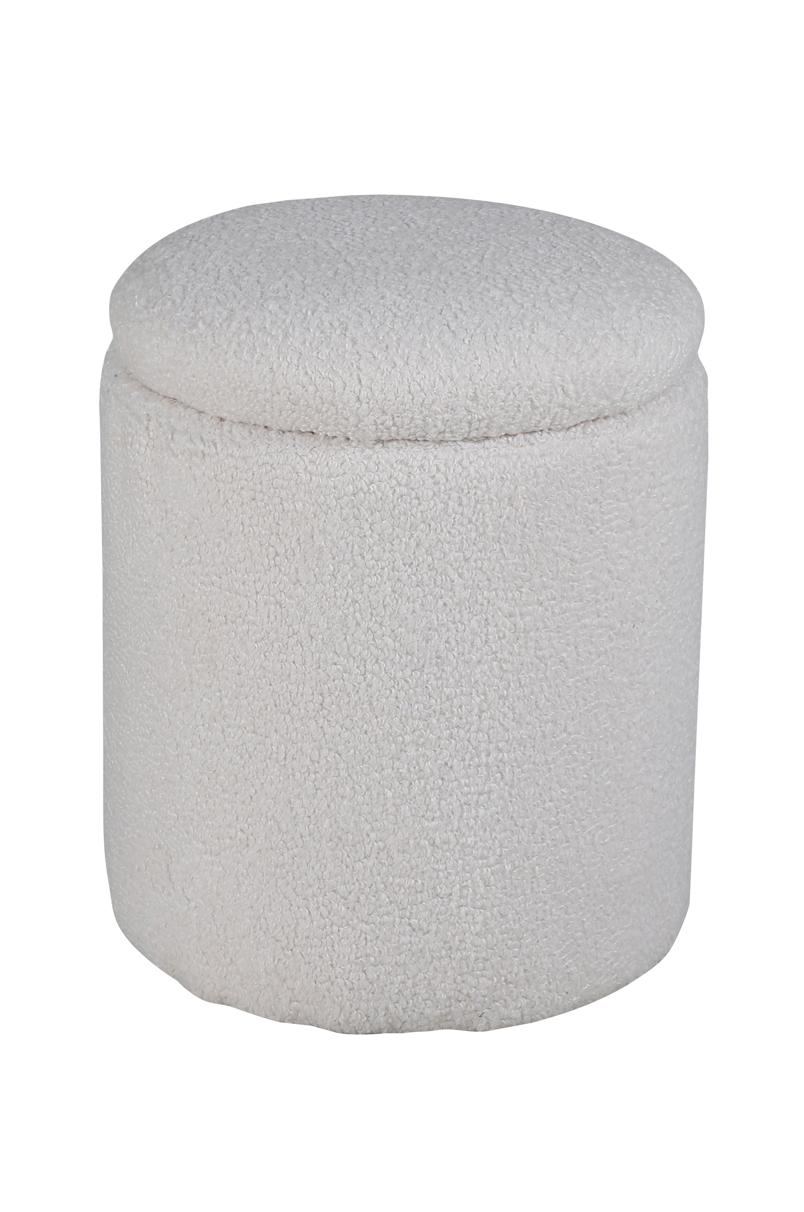 Limpen sittpuff med en sits i teddy eller sammetstyg och en ram i böjt trä. Sittpuffens mått: Diameter: 32 cm, Höjd: 40 cm. Sittpuffen kräver ingen montering.