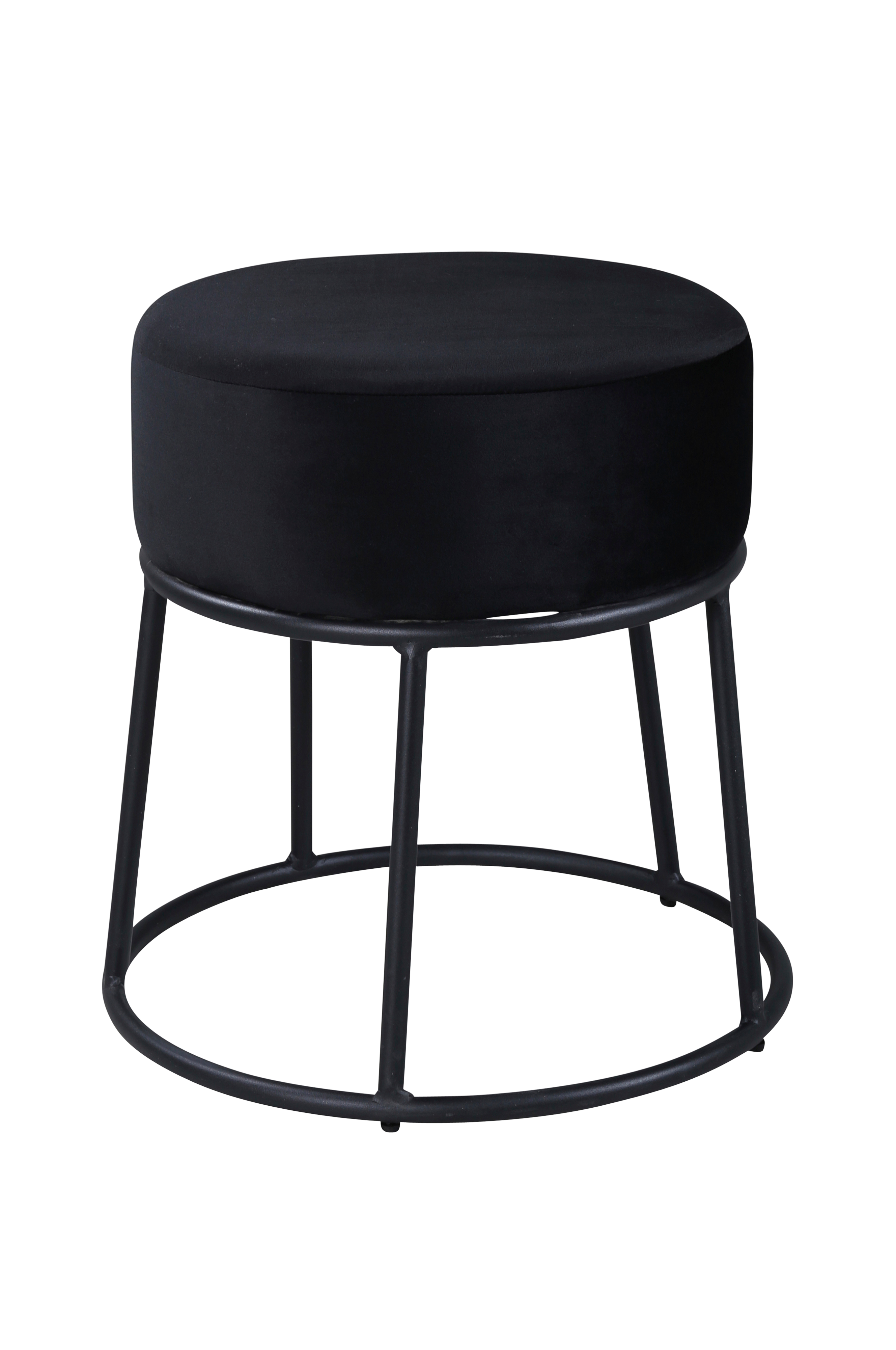 Petra sittpuff med en sits i sammet och ben i järn. Sittpuffens mått: Diameter: 45.5 cm, Höjd: 46.5 cm. Sittpuffen kräver ingen montering.