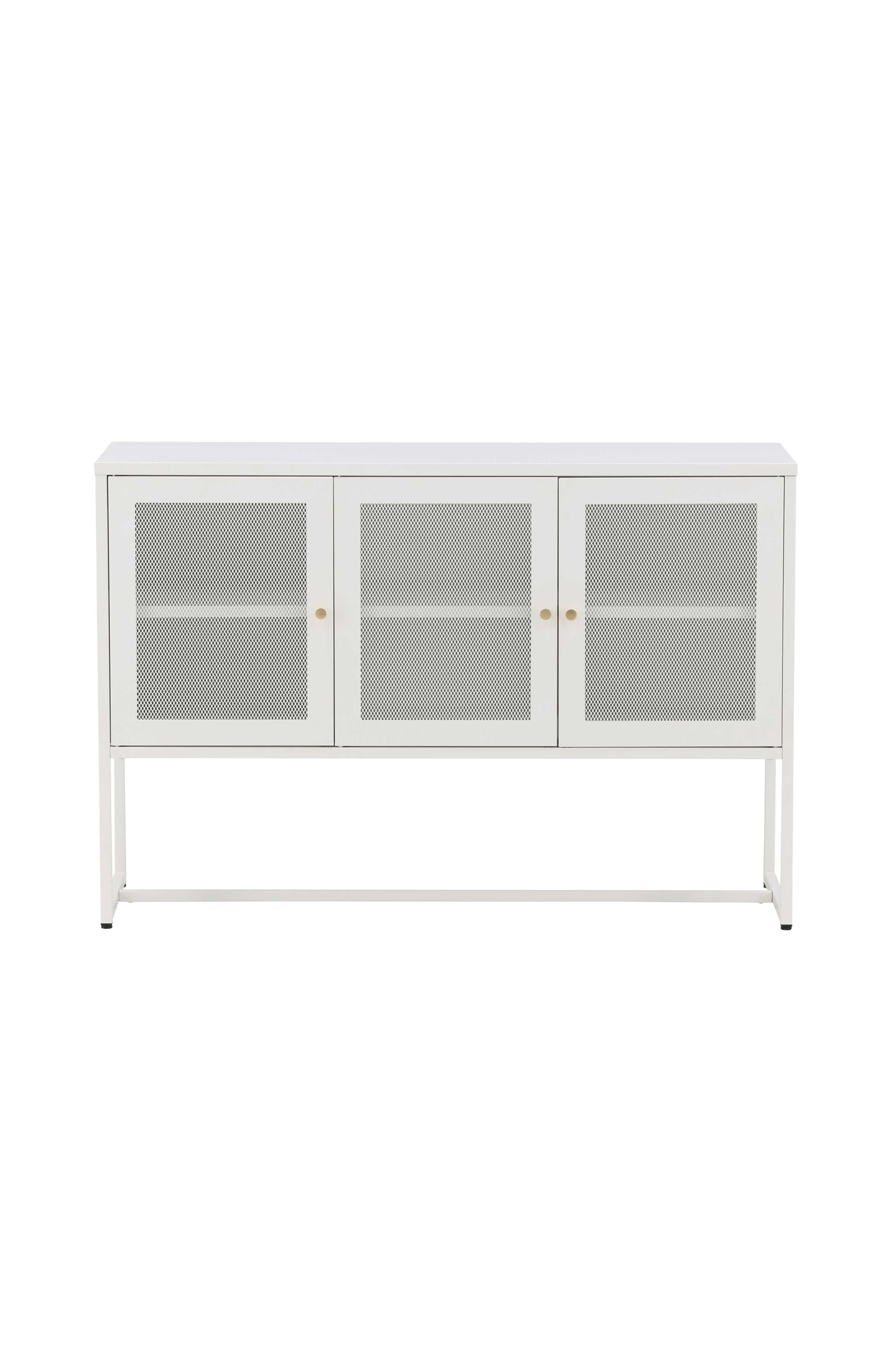 Malla - ett modernt skåp i en tuff industriell design med läckra nätdörrar och ben tillverkade i vit pulverlackerad stål med 2 smarta hyllplan för avlastning. Skåpet lyfts upp av smala, höga ben som skapar en luftig känsla och underlättar även för dammsugaren. Den perfekta förvaringsmöbeln för allt du önskar - fyll med porslin, böcker eller vackra dekorationer. Skåpets smidiga storlek och eleganta utsida gör den lättplacerad och passar bra in i de flesta rum i hemmet, så möblera efter egna behov och önskemål!