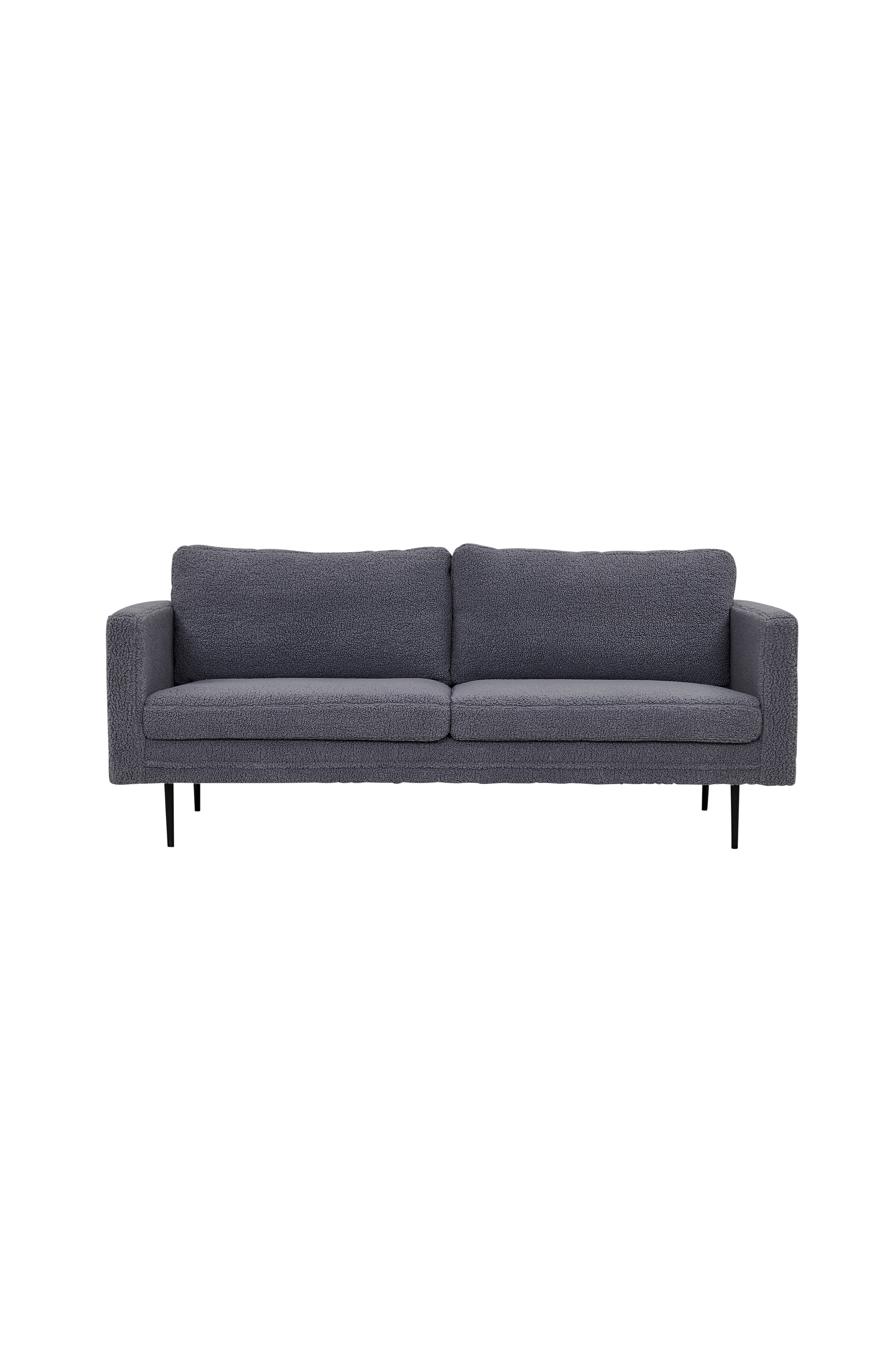 Boel 3-sitssoffa i 100 % teddy polyester och soffben i metall. Sittbredd 181 cm. Höjd till armstöd 70 cm. Höjd på ben 20,5 cm. Tjocklek på sittdynor 15 cm och ryggdynor 20,5 cm. Vikt: 43 kg. Martindale: 10000. Dynor och kuddar har fast klädsel (ej avtagbar). Soffan kräver enklare montering.