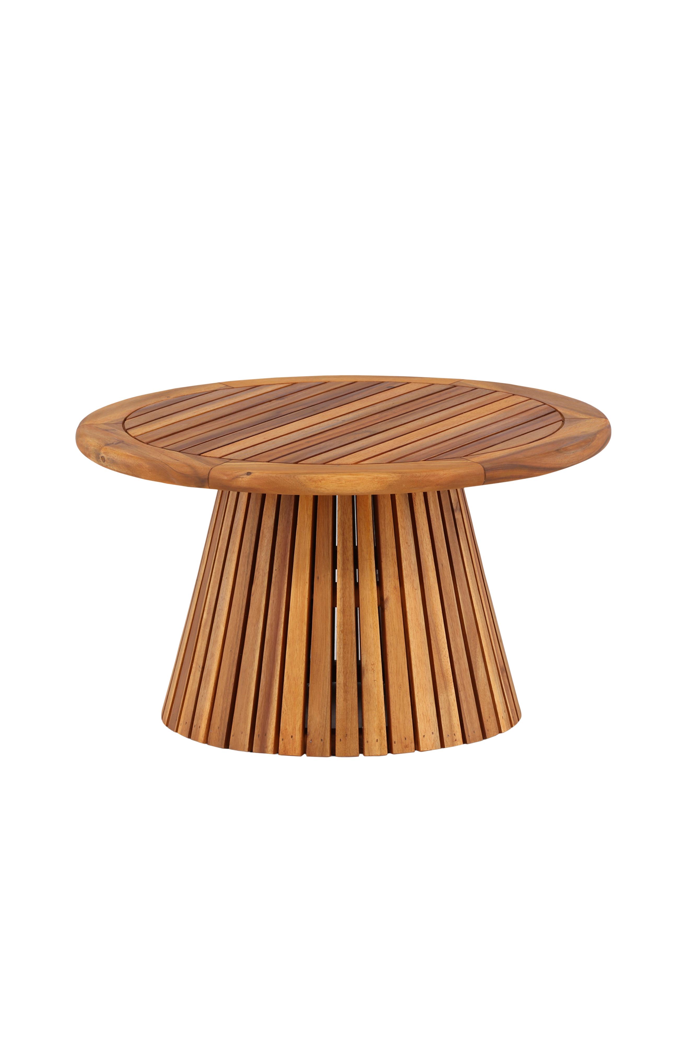 Skapa en härlig gemenskap på uteplatsen kring vårt runda matbord lumpur i modemedveten design! Bordet är genomgående tillverkat i smakfull teak i ett ribbat utförande. Stommen är cylinderformad med en lätt utsvängd design i robust utformning. Den genomgående klassiska natur-kulören är lika tidlös som snygg och enkel att matcha med övrig inredning på altanen. Njut av trivsamma måltider utomhus framöver - här hamnar ingen på kanten! Mått: höjd: 40 cm, diameter 70 cm