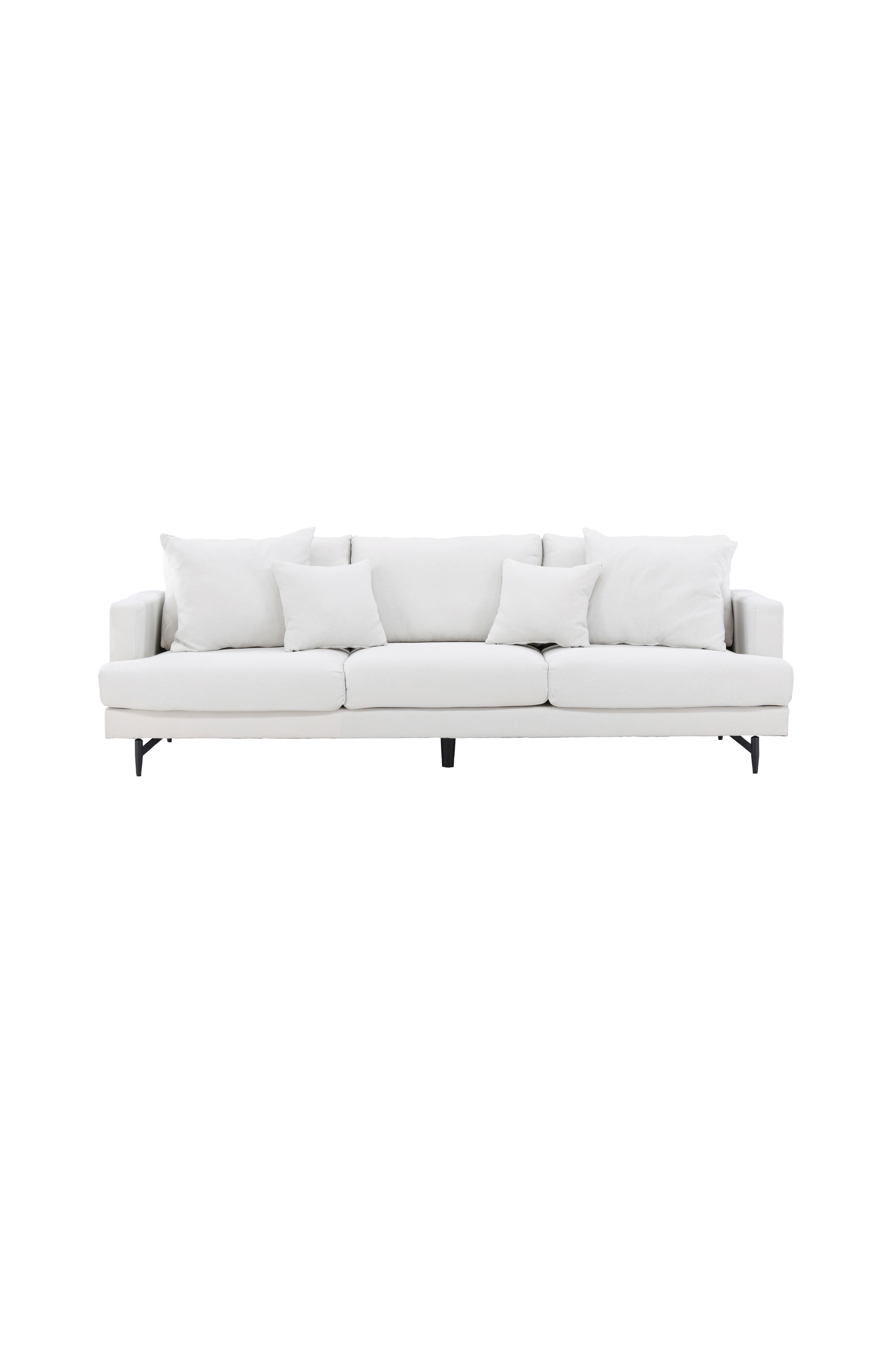 En soffdröm för alla moderna linneälskare just nu! Denna soffa från serien sofia är en rymlig 3-sitssoffa med stilrent linne med fokus på hög komfort. Följ våra tips för bästa skötsel så får du också en soffa som står sig över tid. Designen är både iögonfallande och avkopplande med sin mjuka och inbjudande utsida som är perfekt att sjunka ner i efter en lång dag. Soffan byggs upp av kuddar som utgör ryggstödet och även pryder armstöden. Den stöds av fyra ben i metall som ger ett fint lyft och underlättar för dammsugaren. Så gott som praktiskt helt enkelt. Mys med familjen eller sprid ut dig ensam!