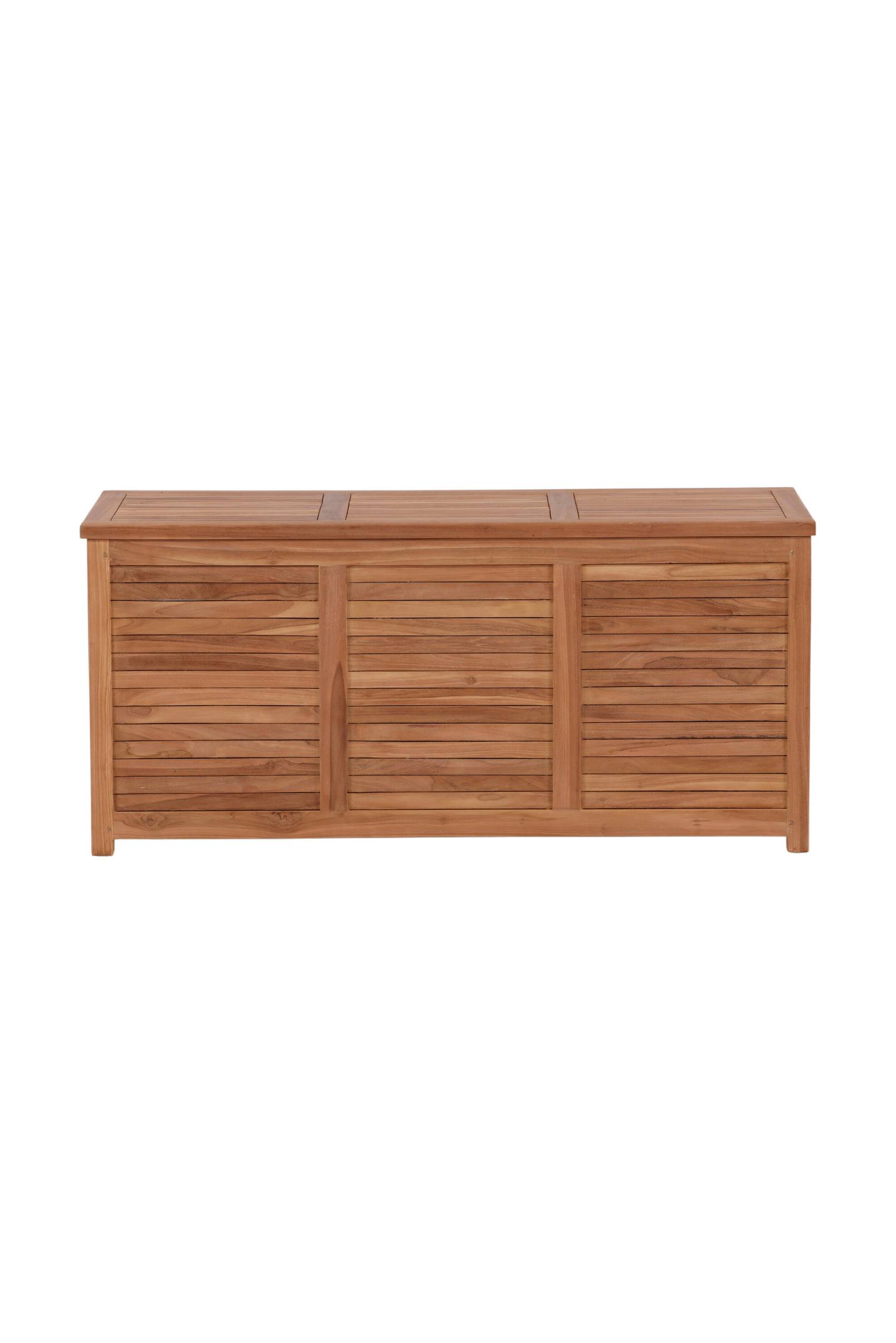 teakträets naturliga motståndskraft mot väder och vind ger lådan hållbarhet året runt. Vi rekommenderar dock att du placerar lådan under tak eller i ett mer skyddat utrymme om du endast tänker använda den för förvaring av dynor - på så sätt ser du till att dynorna håller sig torra och i gott skick över tid.
