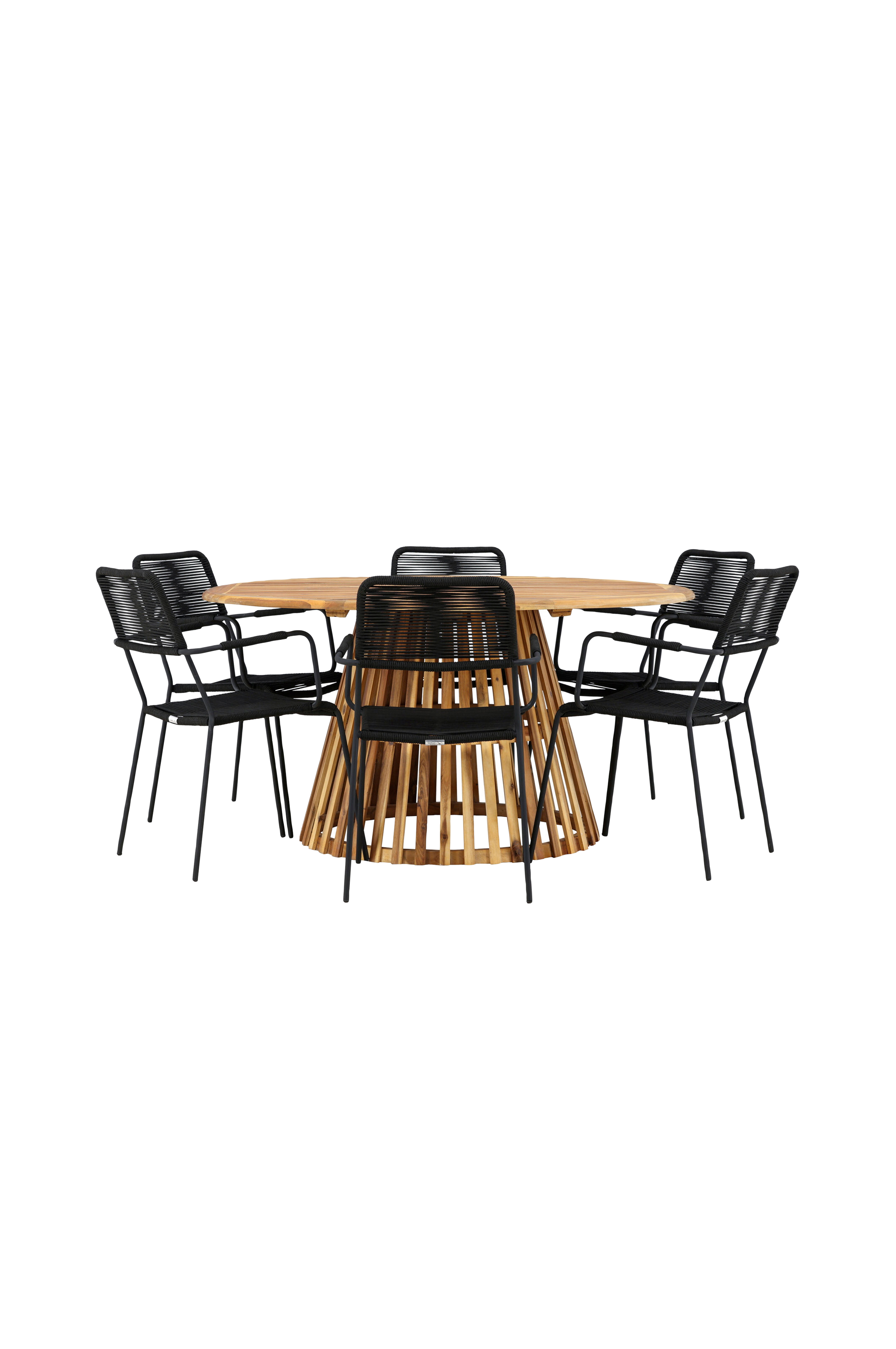 Upptäck den perfekta matgruppen för din utomhusmiljö med det eleganta bordet tucumán och de snygga stolarna lindos. Med en imponerande diameter på 120 cm erbjuder bordet tucumán gott om plats för familjemiddagar och trevliga sammankomster under bar himmel.