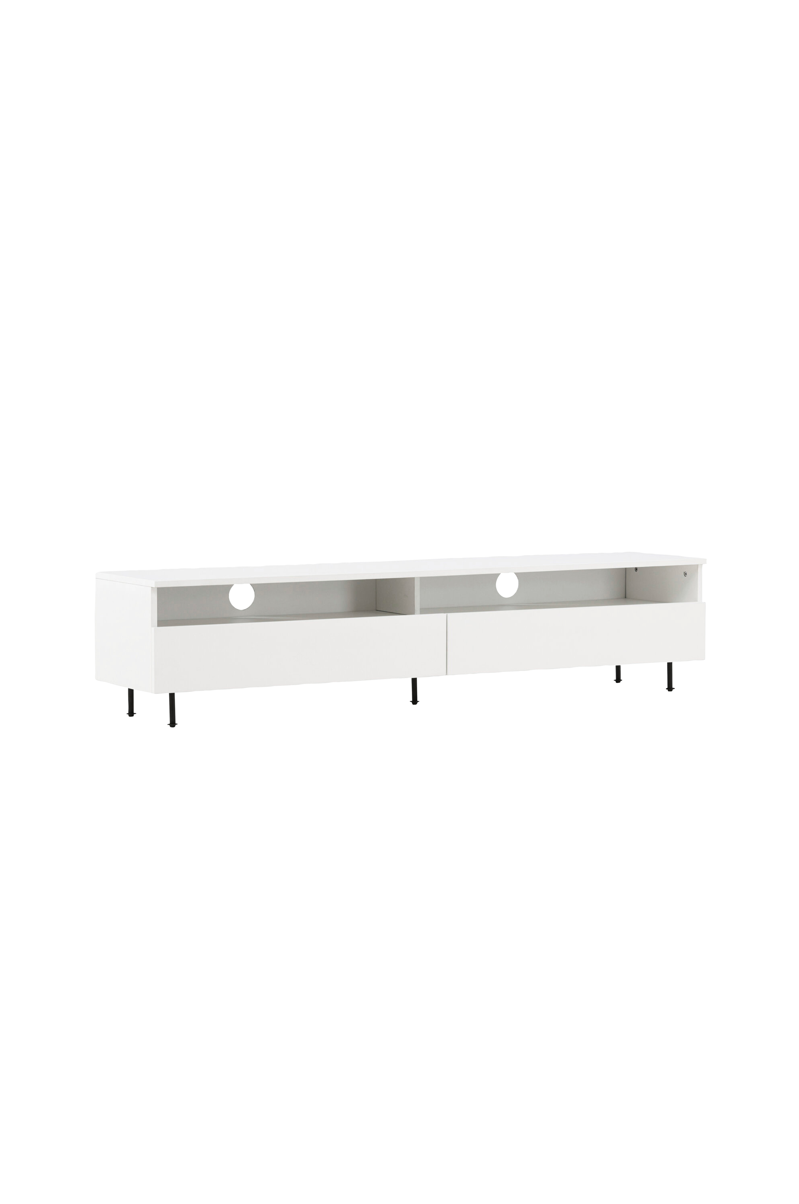 Möblera ditt vardagsrum i den nordiska stilen med den lyxiga tv-bänken i putsad kulör från serien navarra! Denna underbara möbel imponerar verkligen med sin moderna stil och smarta förvaringslösningar. Navarra tv-bänk har två rymliga lådor, perfekta för att diskret röja undan allt från fjärrkontroller till favoritböckerna. De öppna hyllfacken ovanför ger dig flexibilitet att visa upp föremål eller låta de mest använda prylarna vara nära till hands. Skapa sedan även din egen harmoni genom att pryda toppskivan med fina ljusstakar och snygga högtalare för en fulländad tv-upplevelse. Den här tv-bänken lutar mot fyra ben som lyfter upp den till en stilren nivå. Här får du verkligen en tv-bänk som kombinerar tidlös design med smart förvaring. Upplev en känsla av lugn och organiserad lyx varje dag och bygg din soffhörna tillsammans med navarra för en komplett tv-hörna!