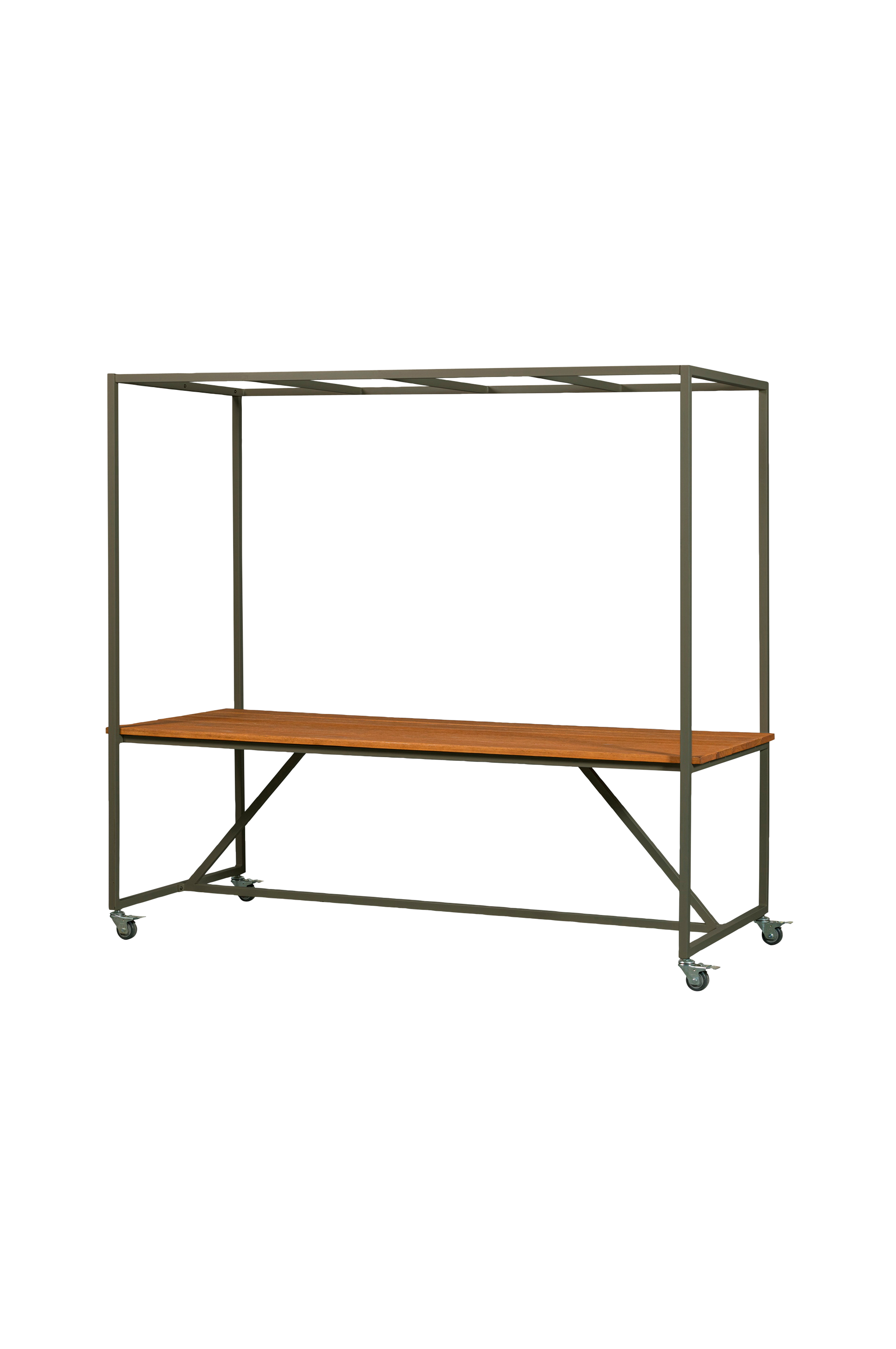 detta unika matbord kommer från kollektionen av varumärket vtwonen. Matbordet, som är tillverkat av eukalyptusträ, har en dekorativ metallfiberram som hänger ovanför bordsskivan. Detta gör att du kan ge din trädgård extra känsla genom att hänga upp mysiga stämningsljus eller växter, till exempel! Hjulen, som är fästa på metallfiberramen, gör matbordet lätt att flytta runt. Hjulen på det här matbordet kan låsas, så att det inte rör sig när du äter.
