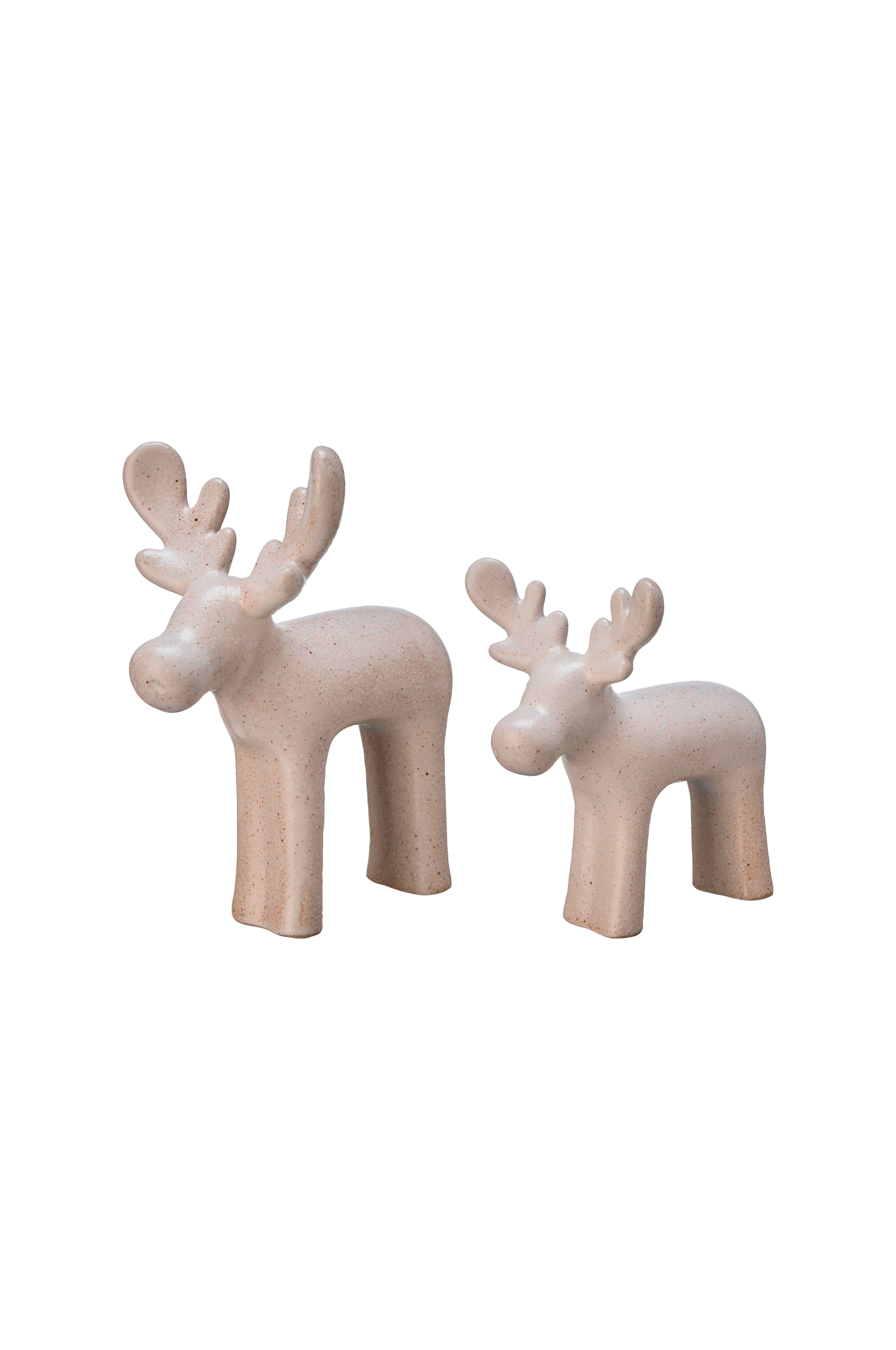 Hjort malte vit melange set om 2 st, 13x9x16 10x8x12cm