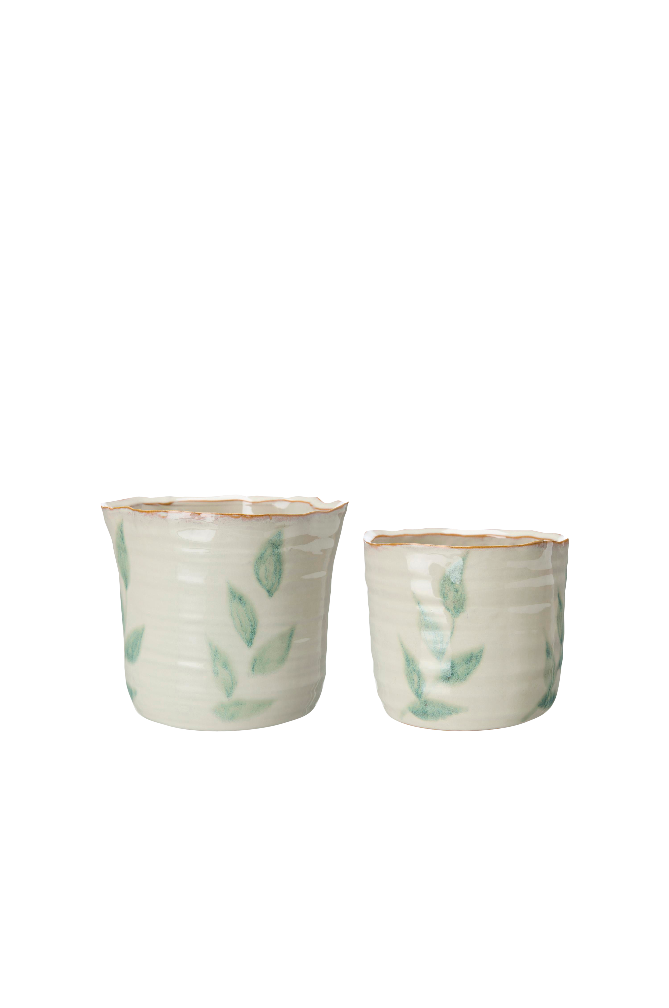 Kruka viola vit/grön set om 2 st, 15x17 13x14cm ø15 cm, ø13 cm