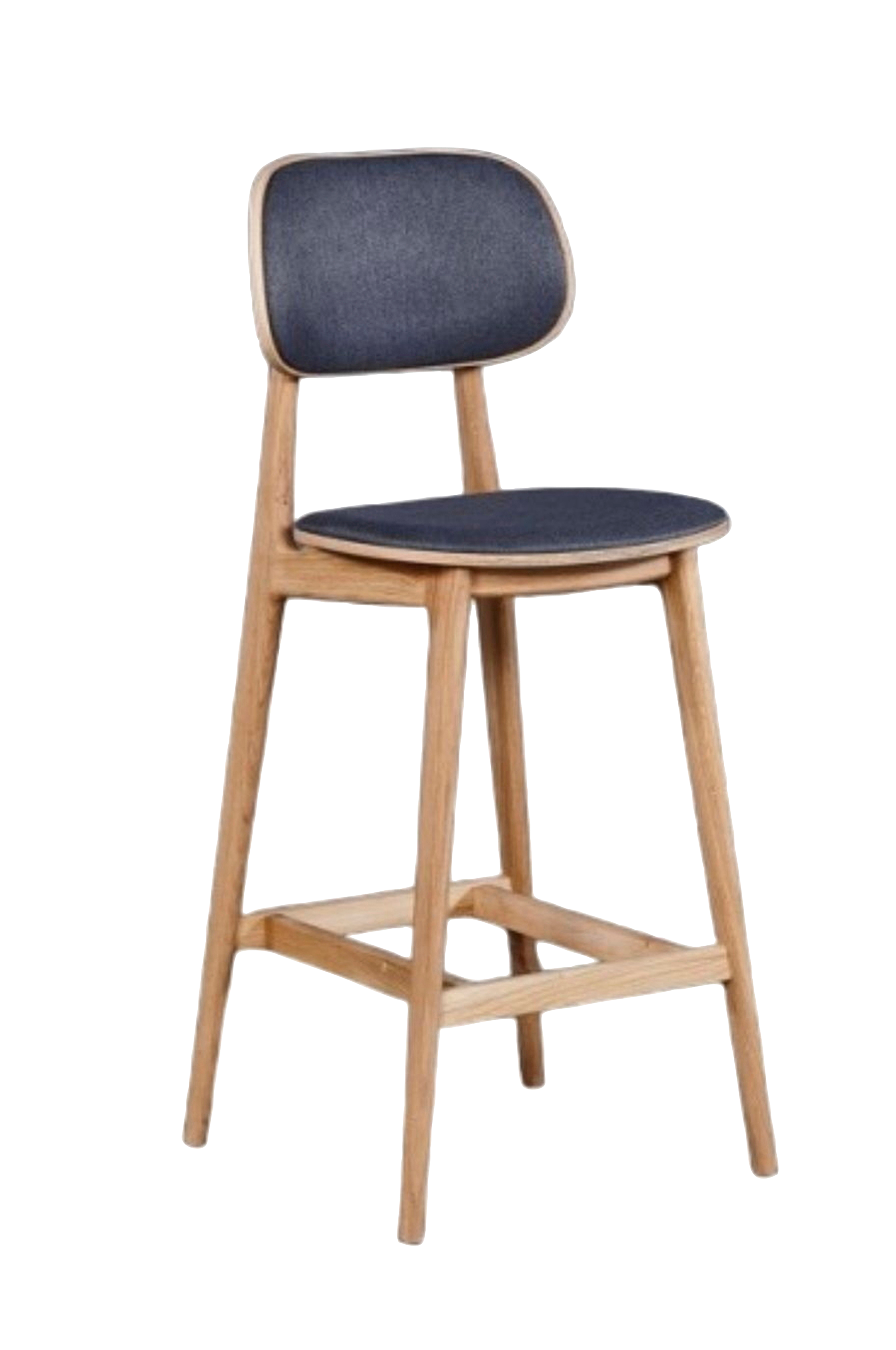 Stilren barstol i ek. Klädd i mörkgrått tyg. Skandinavisk design, hög kvalitet, tillverkad av massiv ek, helt monterad på fabriken. Maximal belastning 110 kg. Malmo tyg: