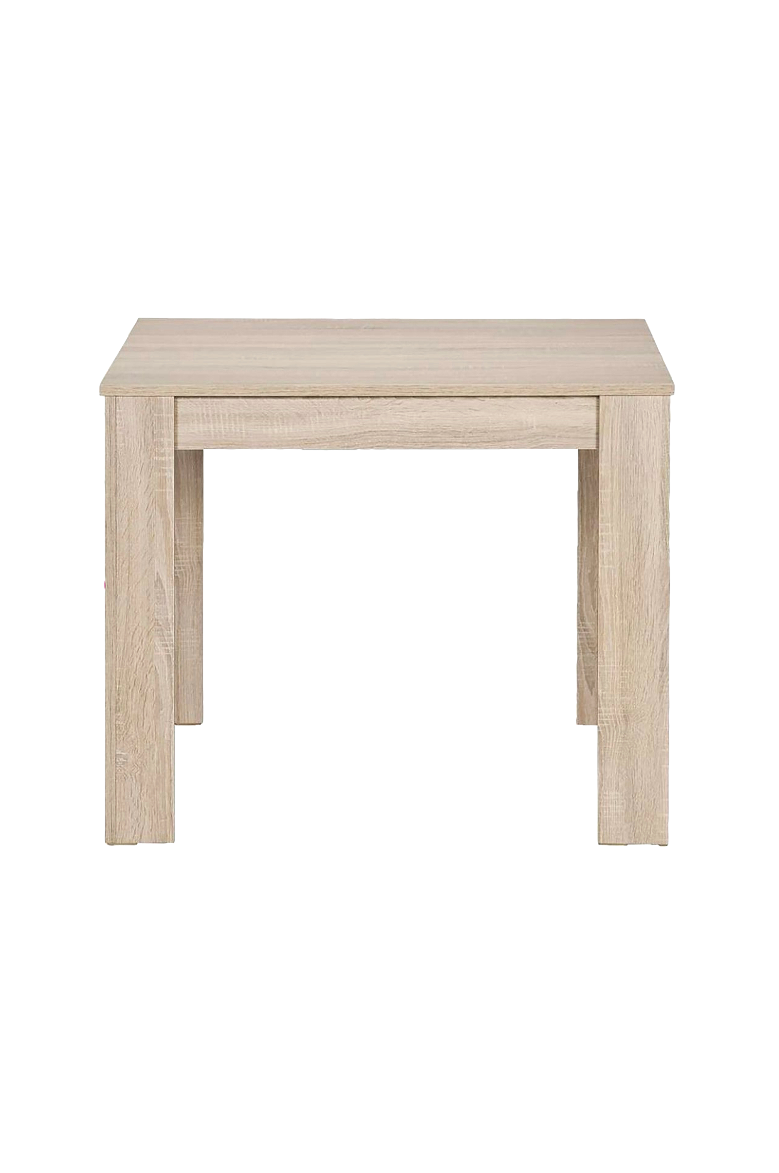 Matbord i modern stil. Ytan är lätt att rengöra. Belagt med melamin. Sonoma-ek-finish. Mått: 80 cm bredd / 76 cm höjd / längd 80 cm