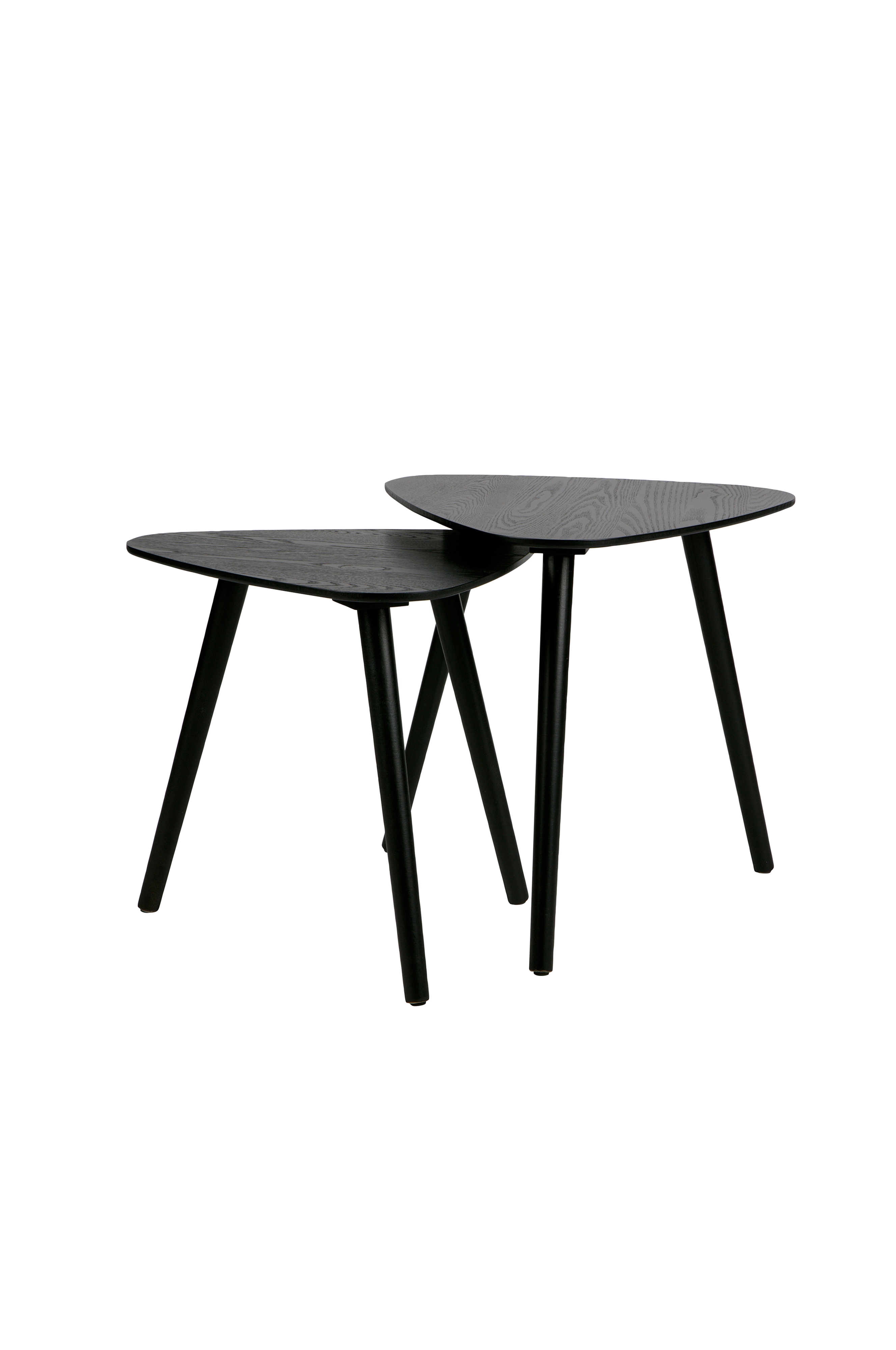 Detta fina bordsset från WOOODs kollektion är ett fint tillskott i inredningen. Nila sidobord har en lekfull form och kombinationen av två bord blir ett spännande inslag i inredningen. Bordsbenen är tillverkade av furu och bordsskivan av ask med svart finish. Borden har olika mått. Det stora bordet har måtten (hxbxd) 45x45x45 cm och det lilla bordet har måtten (hxbxd) 40x40x40 cm. Båda bordsskivorna har tjocklek 1 cm.
