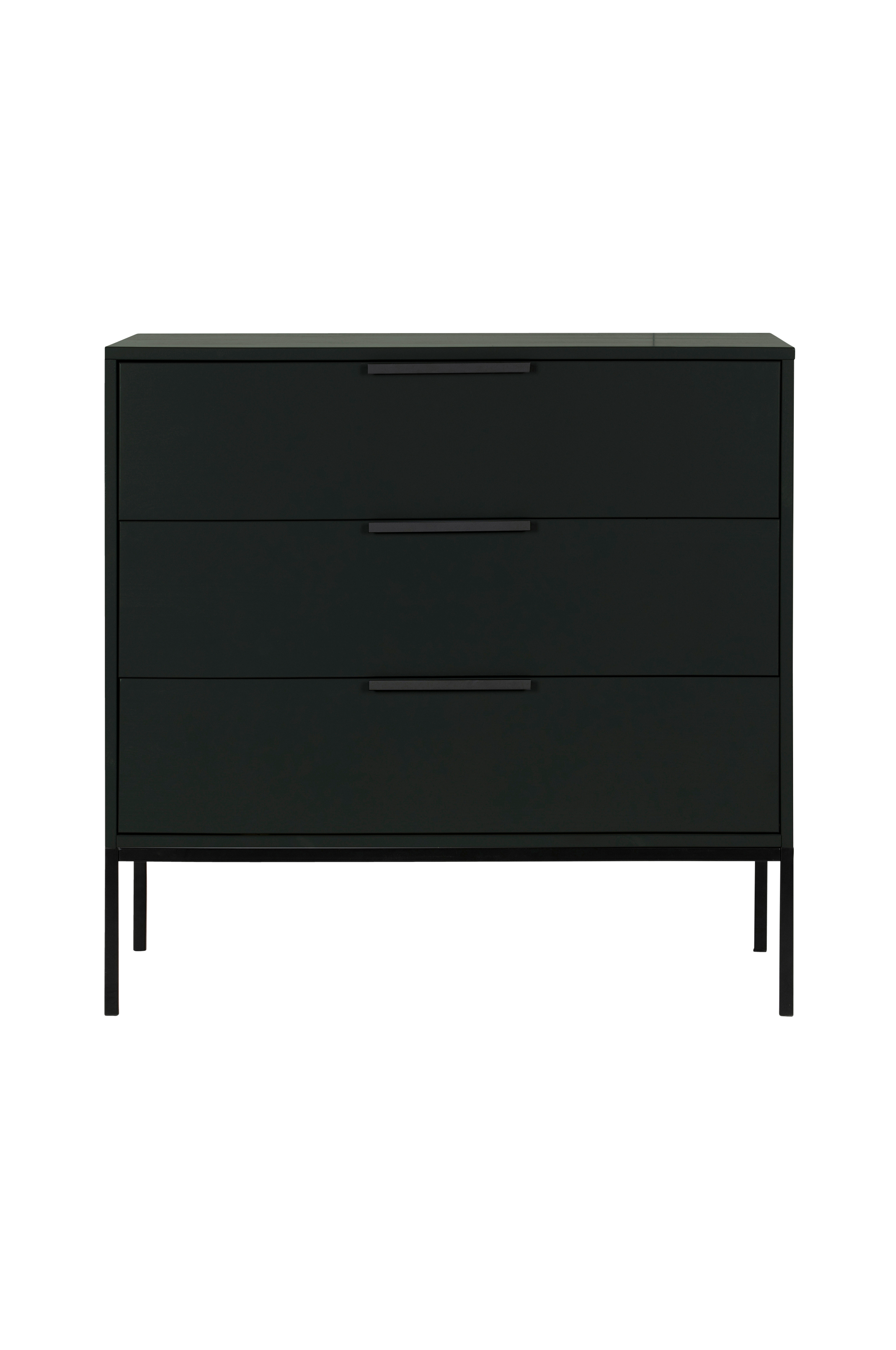 Byrå Adam är tillverkad i solid slipad tall, med stålbotten. Basen är klar med en matt pulverbeläggning. Benen har en höjd på 24 cm.