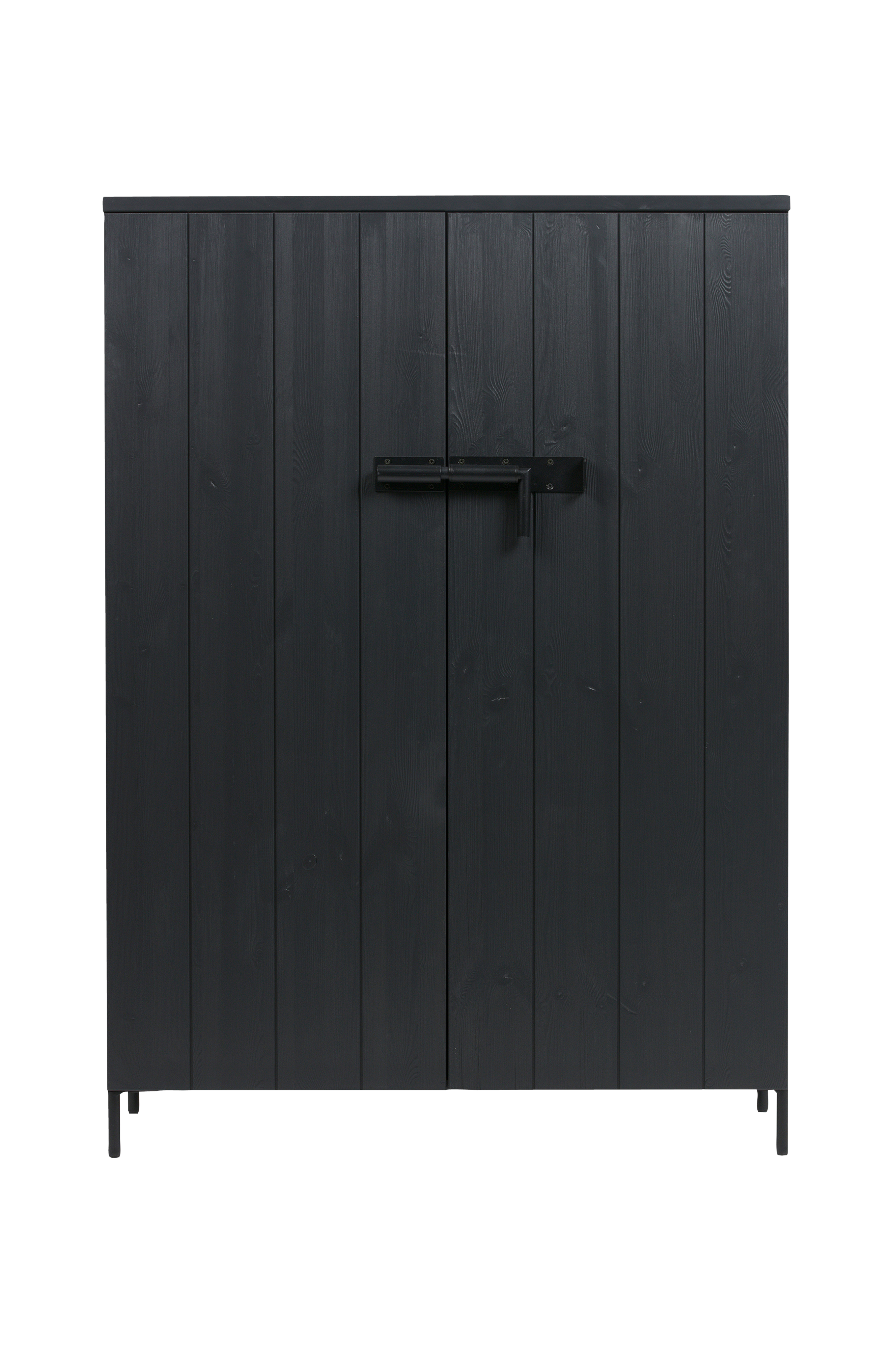 Bruut 2-dörrskåpet från WOOOD-kollektionen är ett robust förvaringsskåp och ett tillägg till alla rum. Skåpet är tillverkat av tall trä med en borstad finish. Benen och låset är tillverkat i metall.