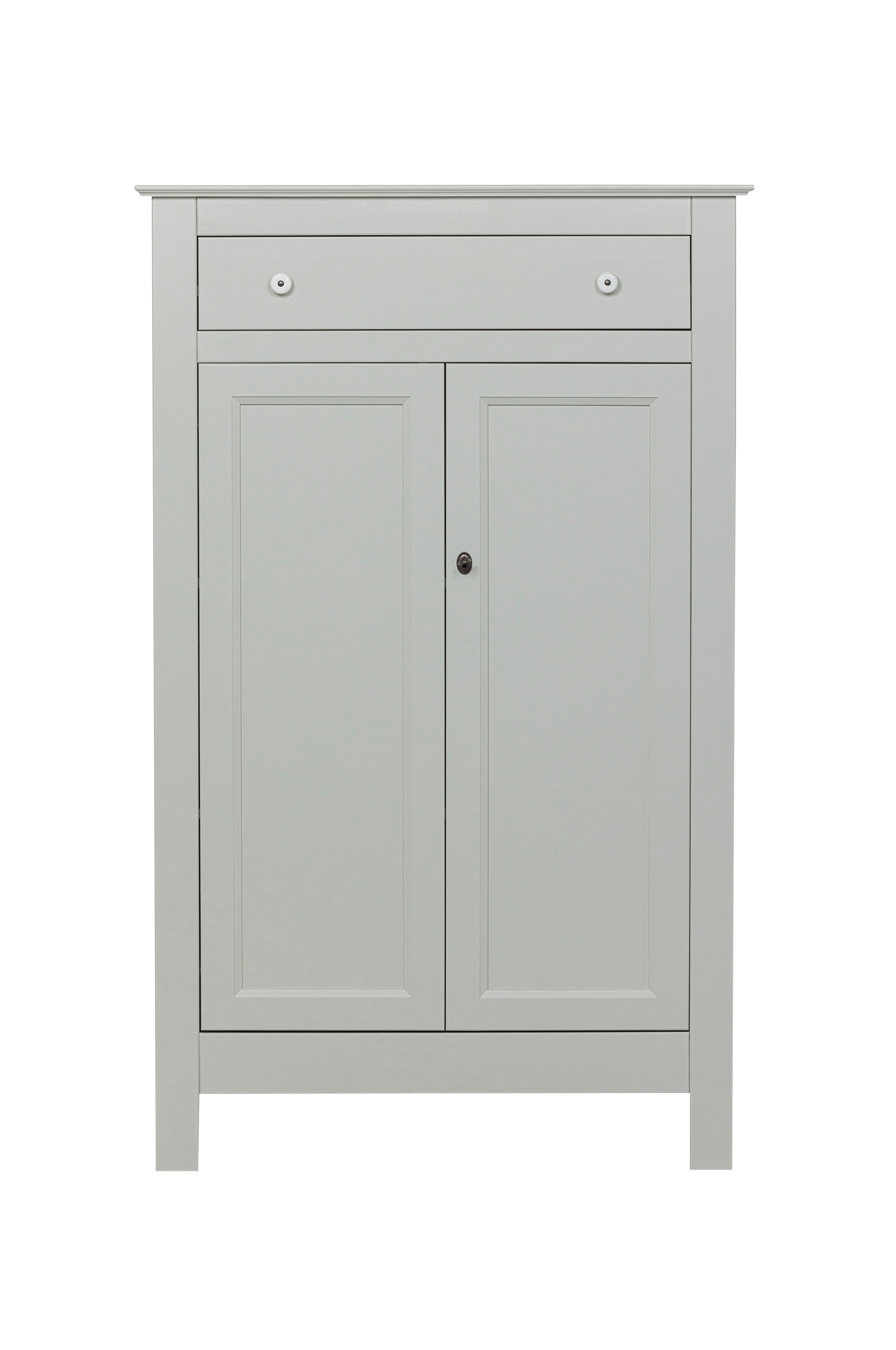 Detta är ett brocante väggskåp i lackerad, FSC-certifierad, tall. Detta väggskåp är tidlöst och passar in i alla interiörstilar. Insidan av detta skåp är tillverkat av laminerad spånskiva och den praktiska lådan upptill, med 2 porslinsknappar, är utrustad med massiv lådestyrare. Skåpets insida är försedd med 3 breda hyllor. Dörrarna är utrustade med massiva metallgångjärn och ett lås med nyckel. Eva-väggskåpet levereras som separata element och är lätt att montera med de medföljande monteringsanvisningarna.