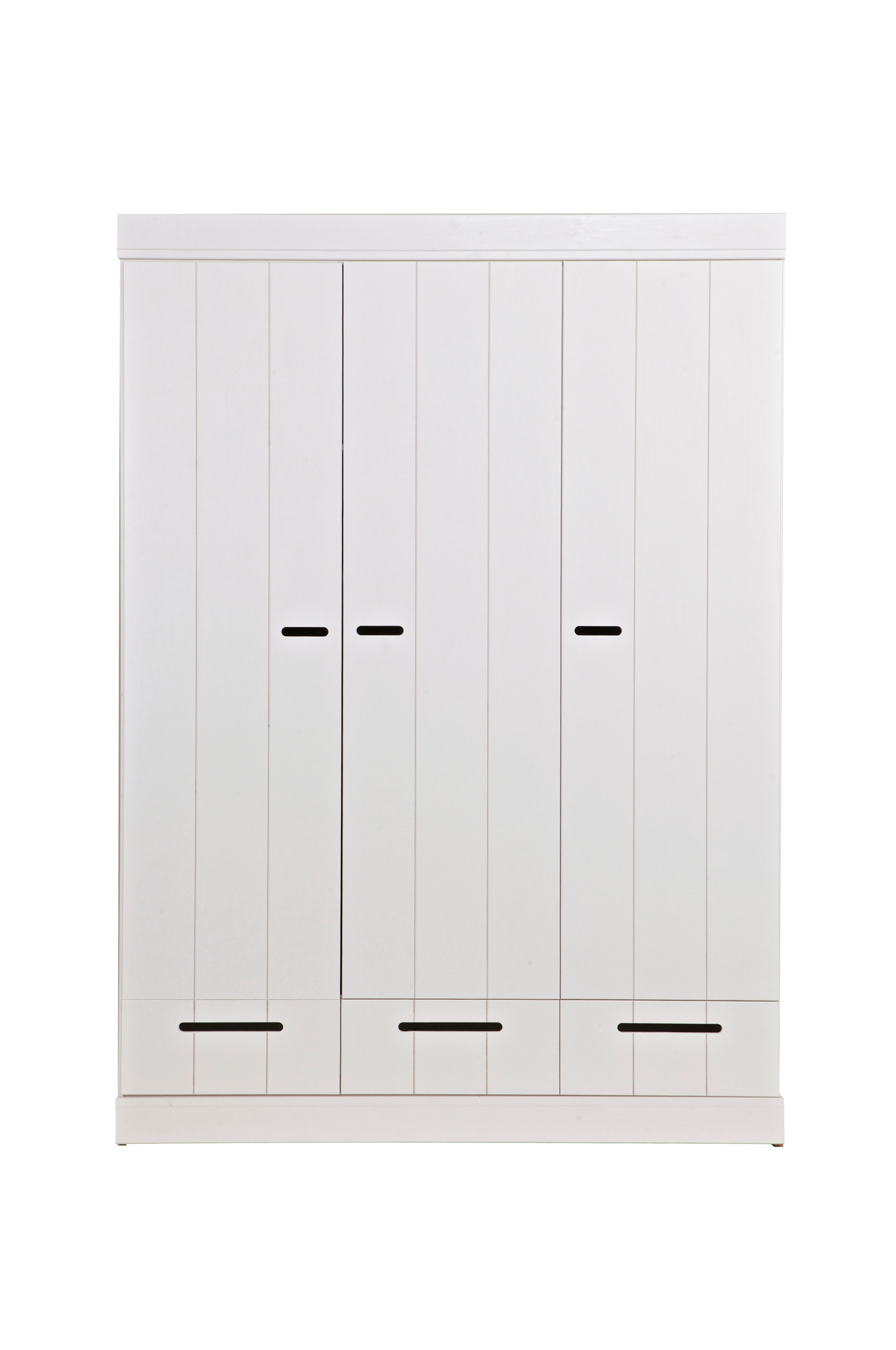 Från CONNECT-serien; en robust garderob med 3 dörrar innehållande 3 praktiska lådor (utrustade med robusta metalllådeguider). Med CONNECT-skåpen kan du bygga din egen skåpvägg! CONNECT-skåpets skrov är gjord av massiv tall. Insidan är utrustad med laminerade hyllor, praktiskt att rengöra! Skåpen är målade vita, men du kan också måla dem i en annan färg på nolltid (använd i så fall en vattenbaserad färg).