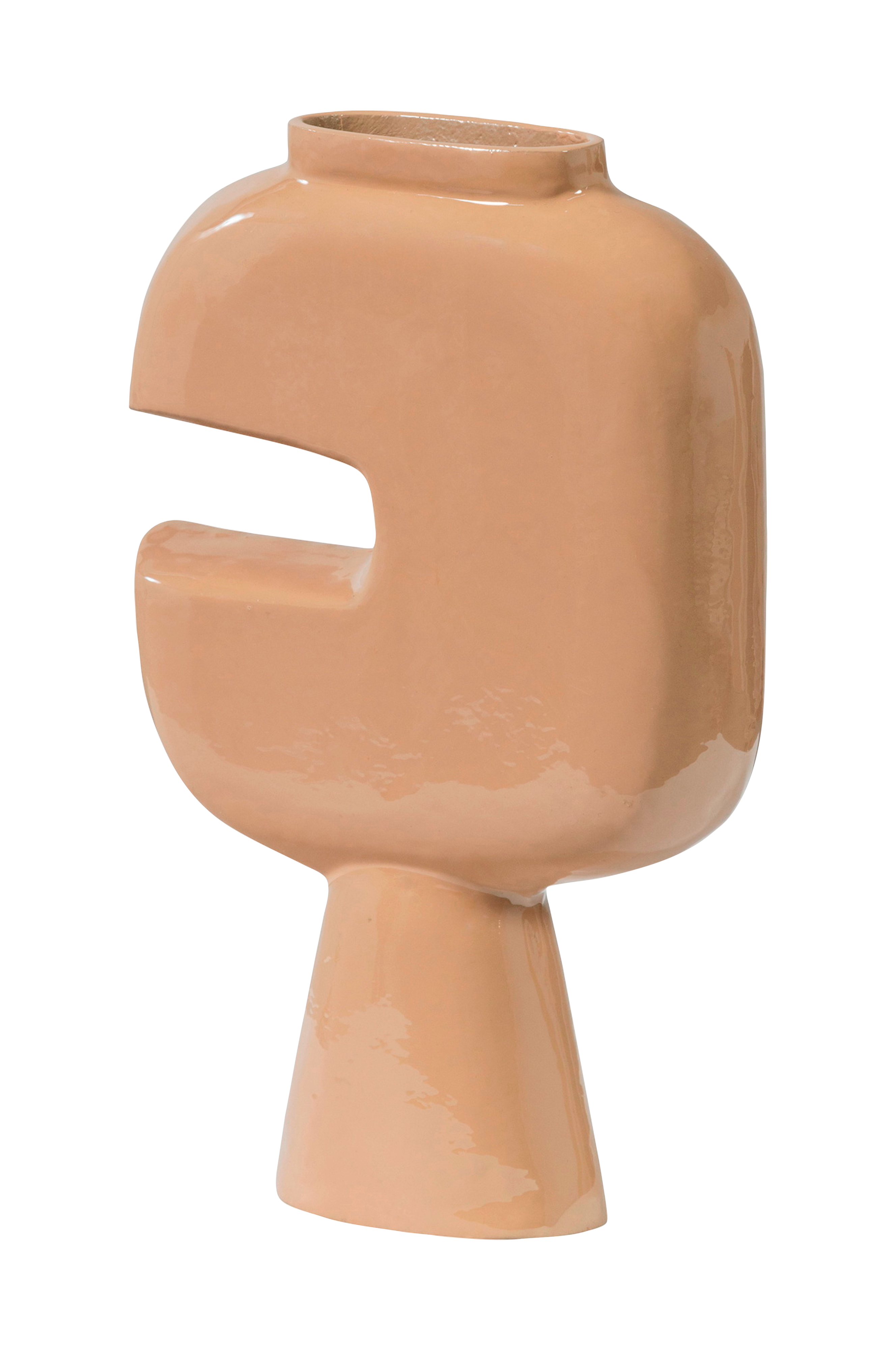 Ge din inredning en konstnärlig touch med denna unika vas. Den abstrakta designen och den ovanliga öppna formen gör denna vas till ett riktigt blickfång, även utan blommor. Den mjuka beige tonen skapar ett varmt och modernt intryck, vilket gör att vasen smälter in i olika inredningsstilar. Placera den ensam som ett statement eller kombinera den med andra dekorativa föremål för en lekfull look.