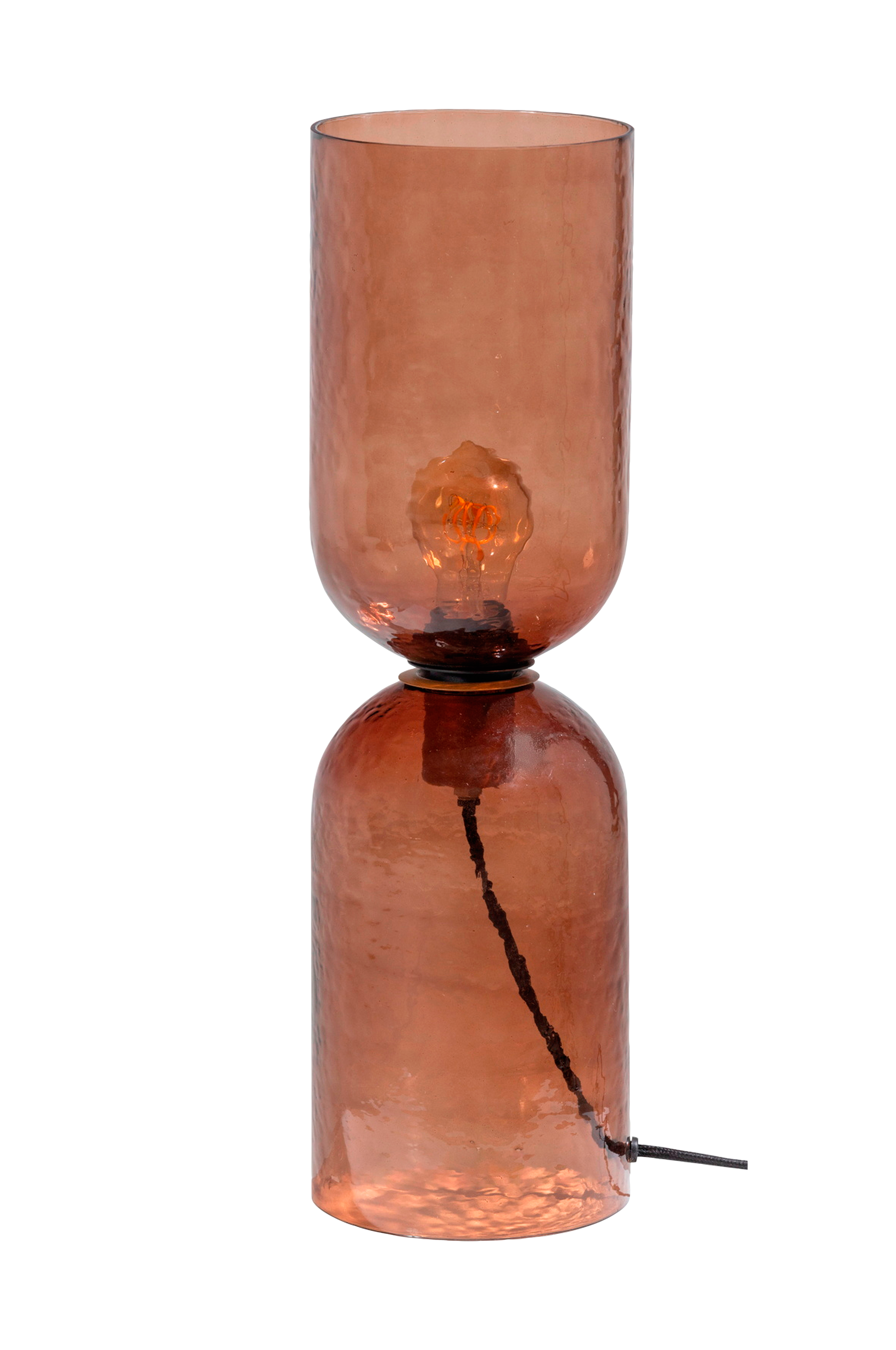 bordslampan Gigi med hamrat glas kommer från det holländska märket WOODs kollektion. Gigi är en riktig blickfångare tack vare sin eleganta form och unika kombination av glas och metall. Den smala, höga designen i rökt glas ger ett varmt ljus och ger lampan ett modernt, lyxigt utseende. Tack vare sin subtila design passar lampan enkelt in i en mängd olika inredningsstilar: från modern och industriell till minimalistisk och chic. Placera den på ett sideboard, nattduksbord eller sidobord och skapa omedelbart en stämningsfull accent i ditt vardagsrum.