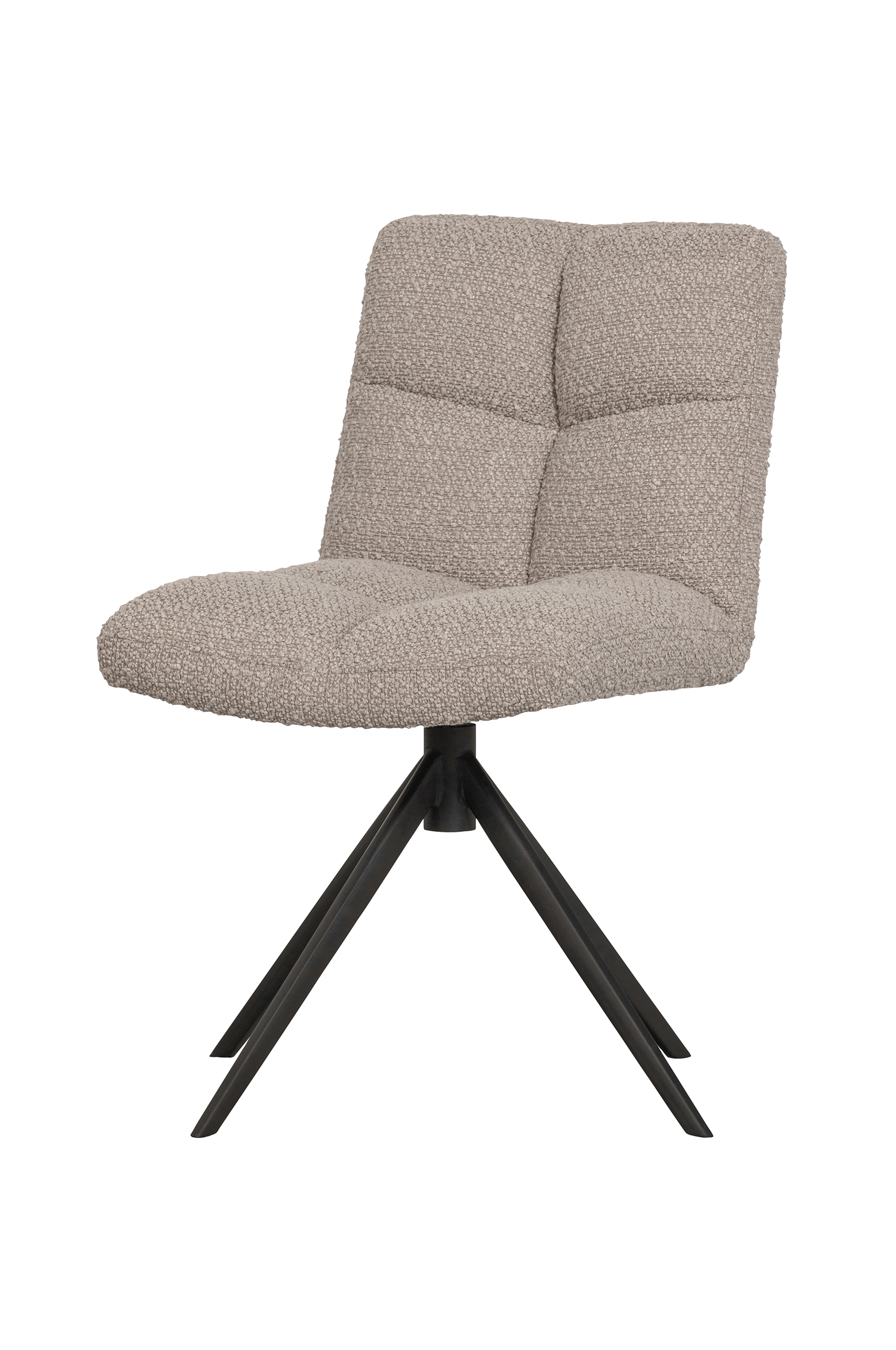 Vinny har klädsel i det otroligt mjuka bouclétyget Cres. Klädselns material i 100% polyester gör stolen mycket lättskött. Vinny har svart stomme av metall med fyra ben och ett smidigt rotationssystem. Fyllningen av PU-skum ger hög sittkomfort vilket är perfekt för långa middagar!