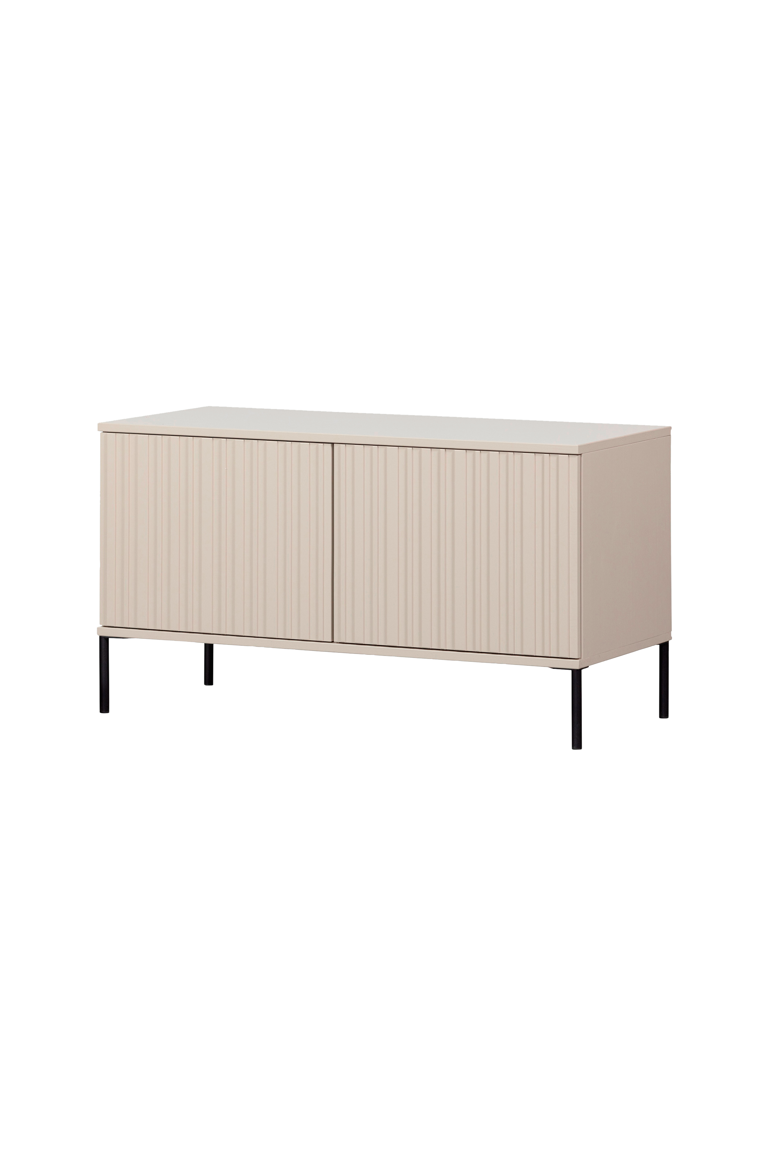 Stabilt tv-möbel med grafiskt präglade dörrar