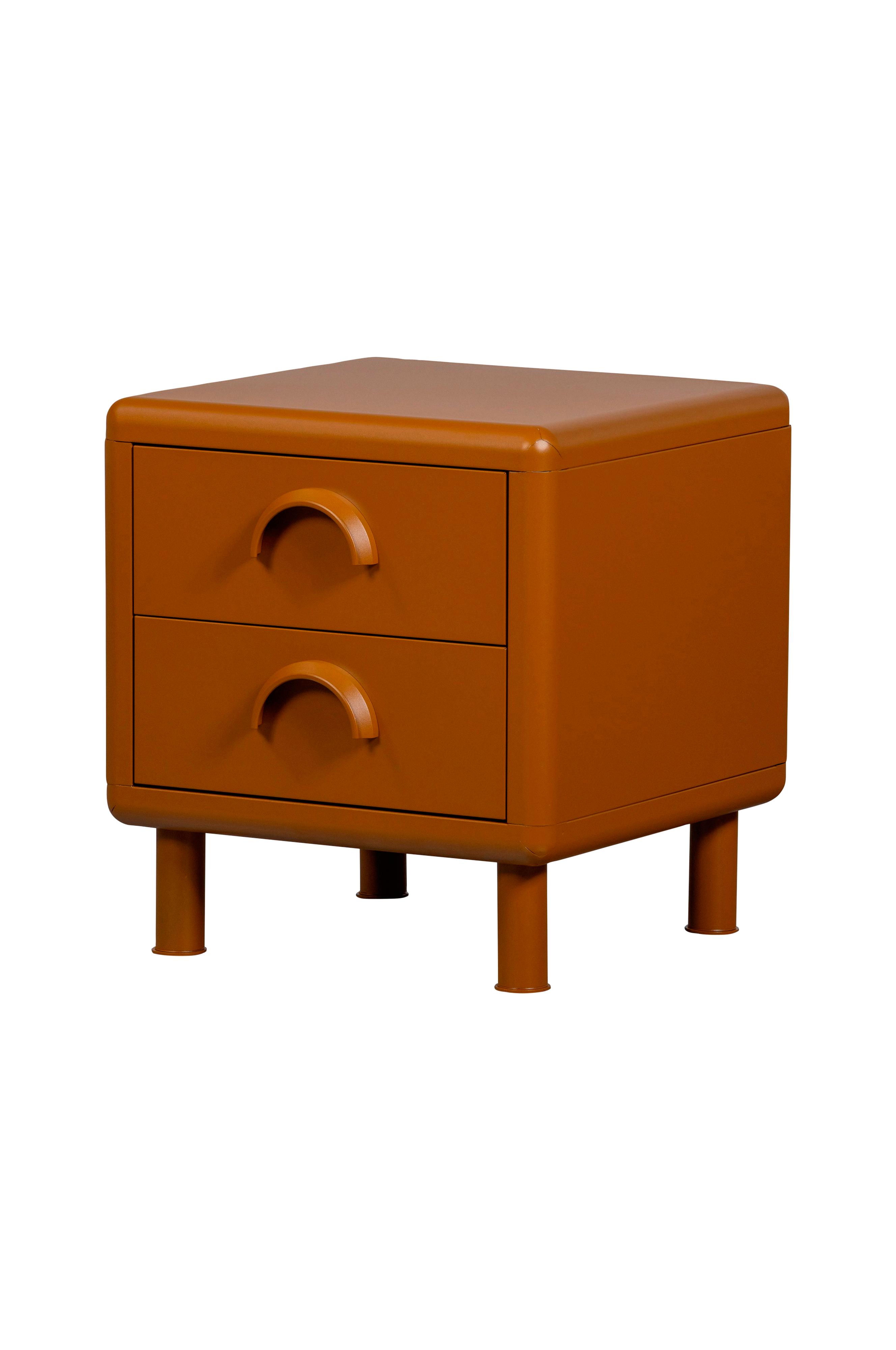 rune är en slående byrå med retrodesign från det holländska varumärket wooods kollektion. Den här lekfulla förvaringsenheten är utrustad med två lådor, var och en med ett välvt handtag. Rune erbjuder tillräckligt med utrymme för att förvara olika föremål snyggt och utom synhåll, vilket gör den inte bara praktisk som nattduksbord utan också utmärkt som en kompakt byrå i andra rum.