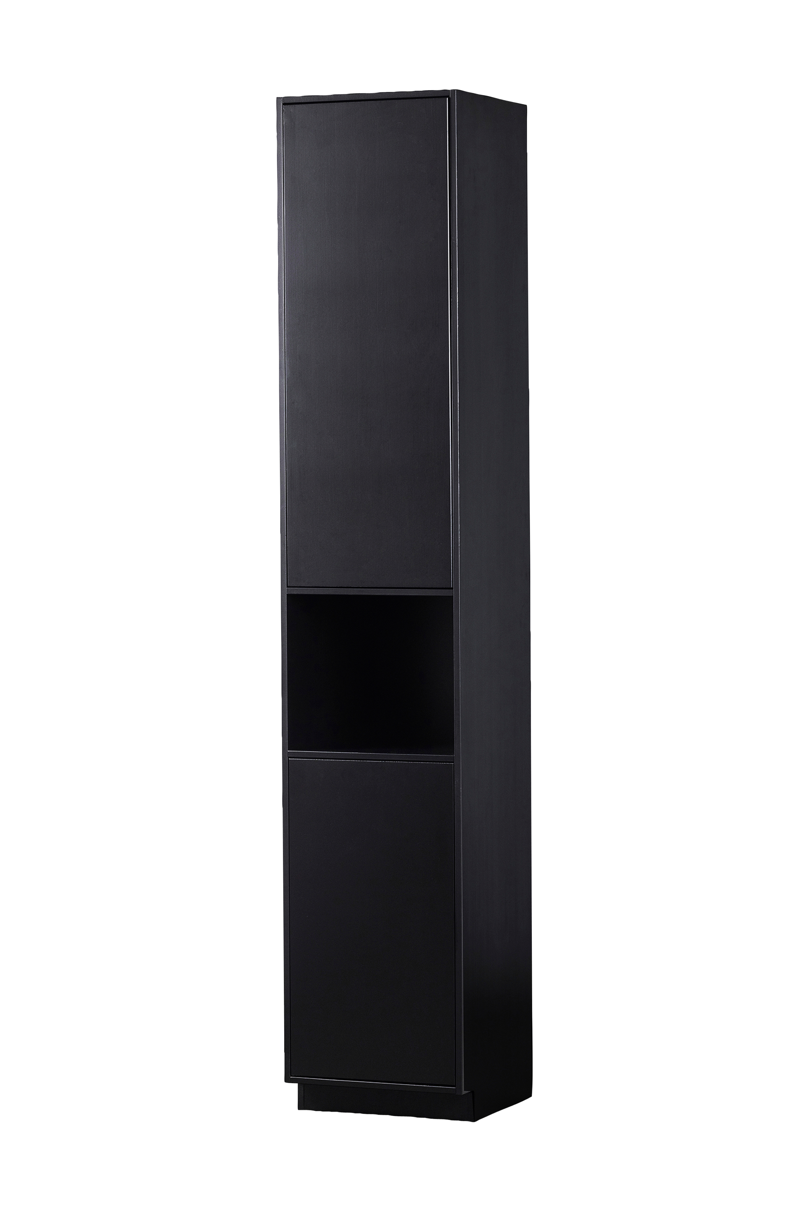 Finca skänk/förvaringsskåp är 40 cm bred och är den smala modellen. Den breda skänken är 110 cm bred och har två dörrar. Den övre dörren täcker tre praktiska förvaringsutrymmen. Nedanför finns ett öppet utrymme där du kan visa dina finaste föremål. Den nedre dörren håller ytterligare två rymliga förvaringsutrymmen utom synhåll. De sex utrymmena är alla 32 cm höga, 38 cm breda och 37 cm djupa. Skänkens nedre kant lämnar 7 cm tomrum framtill, vilket ger möbeln ett flytande intryck.