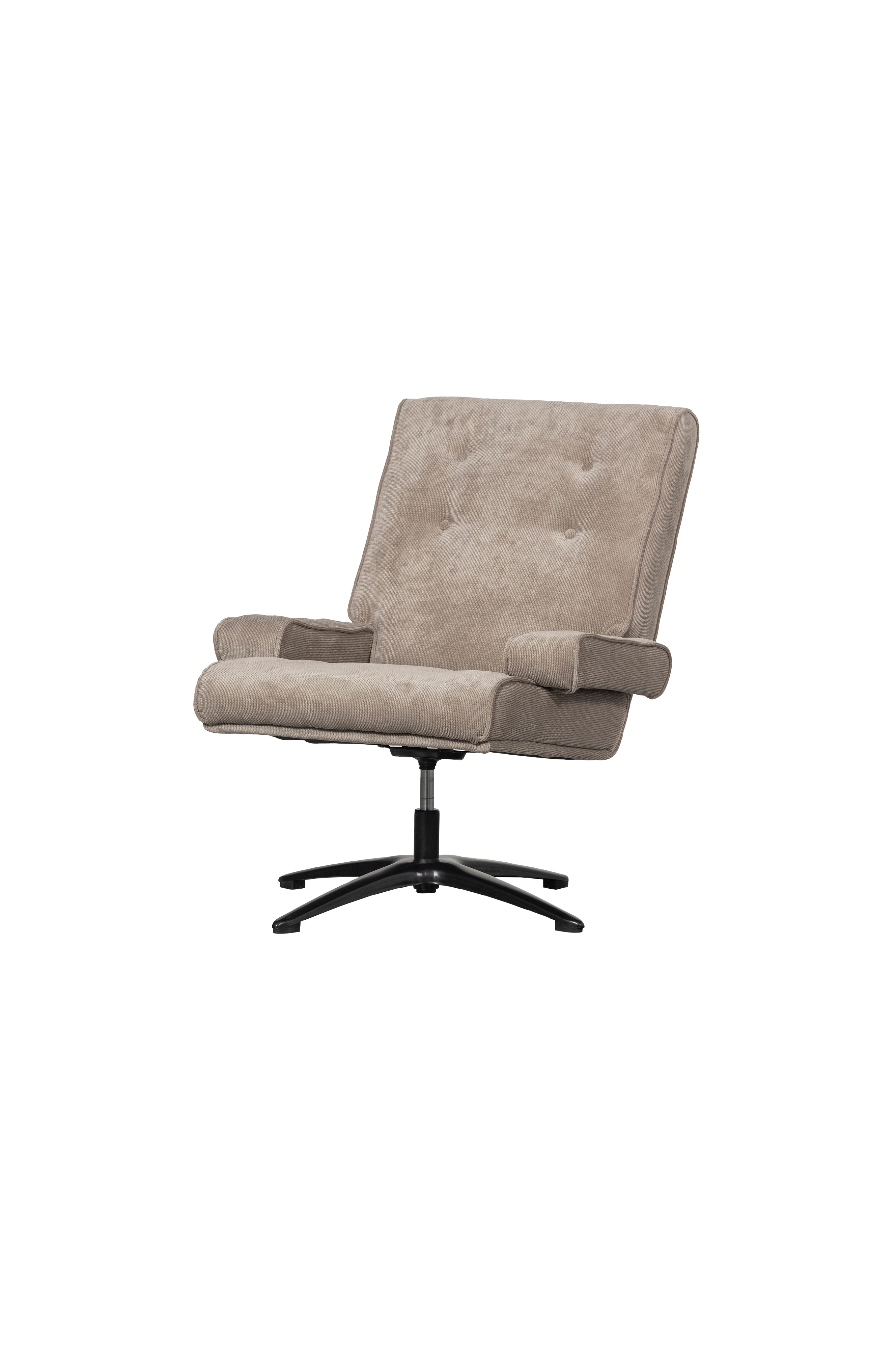 en slående retrodesign i uppdaterad stil: det här är William! Den snygga snurrfåtöljen ingår i en exklusiv kollektion från det nederländska inredningsmärket WOOOD, den är mycket bekväm och tar dig tillbaka till 1960-talet. En rymlig fåtölj på en modern fot med snurrmekanism. Snurrfåtöljen William är klädd med ett matt/blankt ribbat tyg med en lekfull, slingrande kant.
