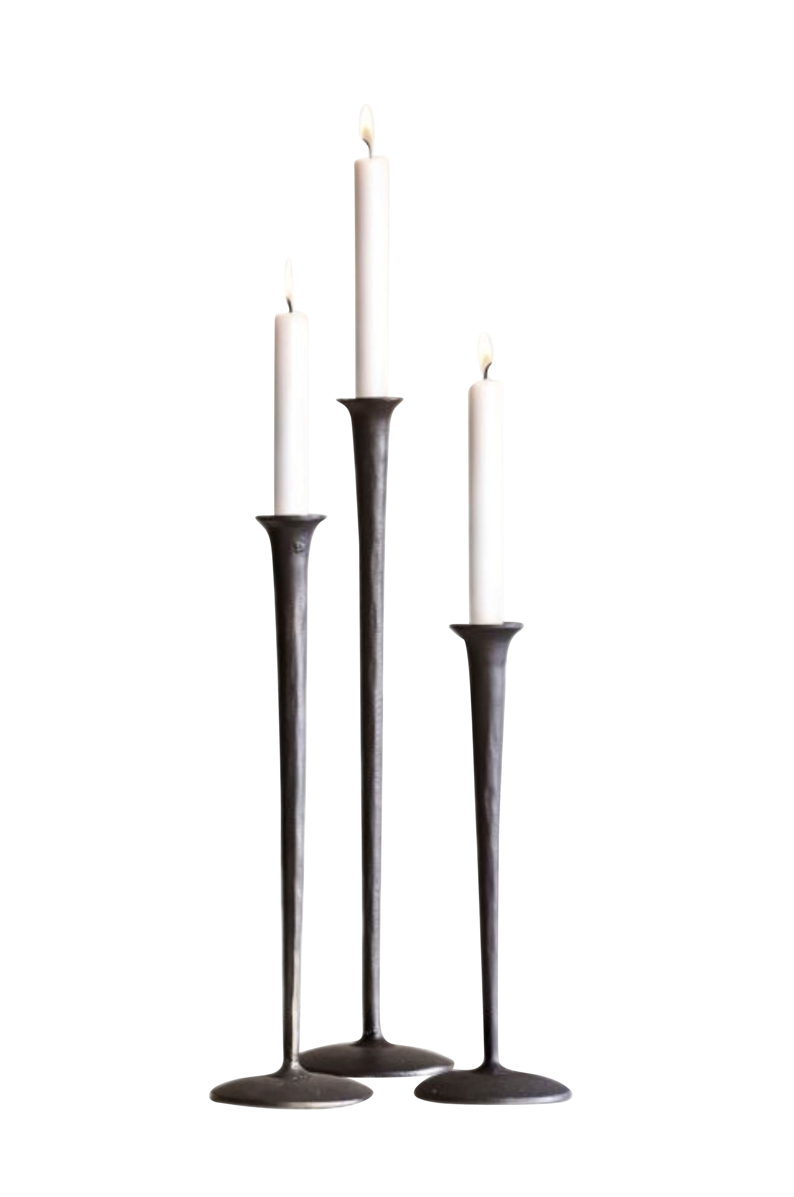 Skapa stämningsfulla middagar med Gallery bordsljusstakar. Tillverkade i rå aluminium, set om 3. Stor 45 cm, mellan 37 cm, liten 30 cm.