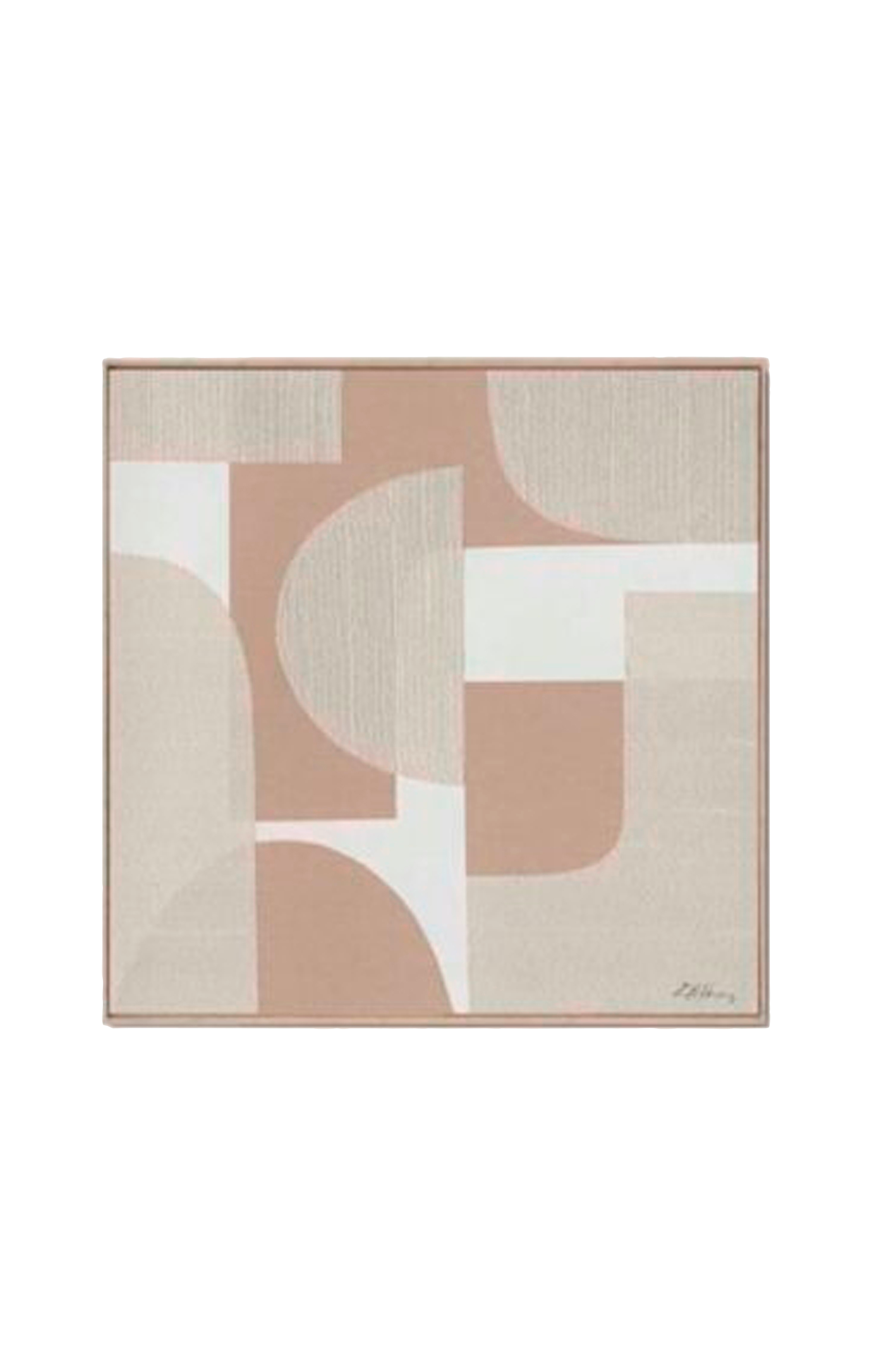 Handmålad canvas med ram av naturligt trä. Ett abstrakt canvastryck med lager av penseldrag i neutrala färger som skapar ett strukturerat mönster på en ljus bakgrund. En vacker tavla att pryda din vägg med.