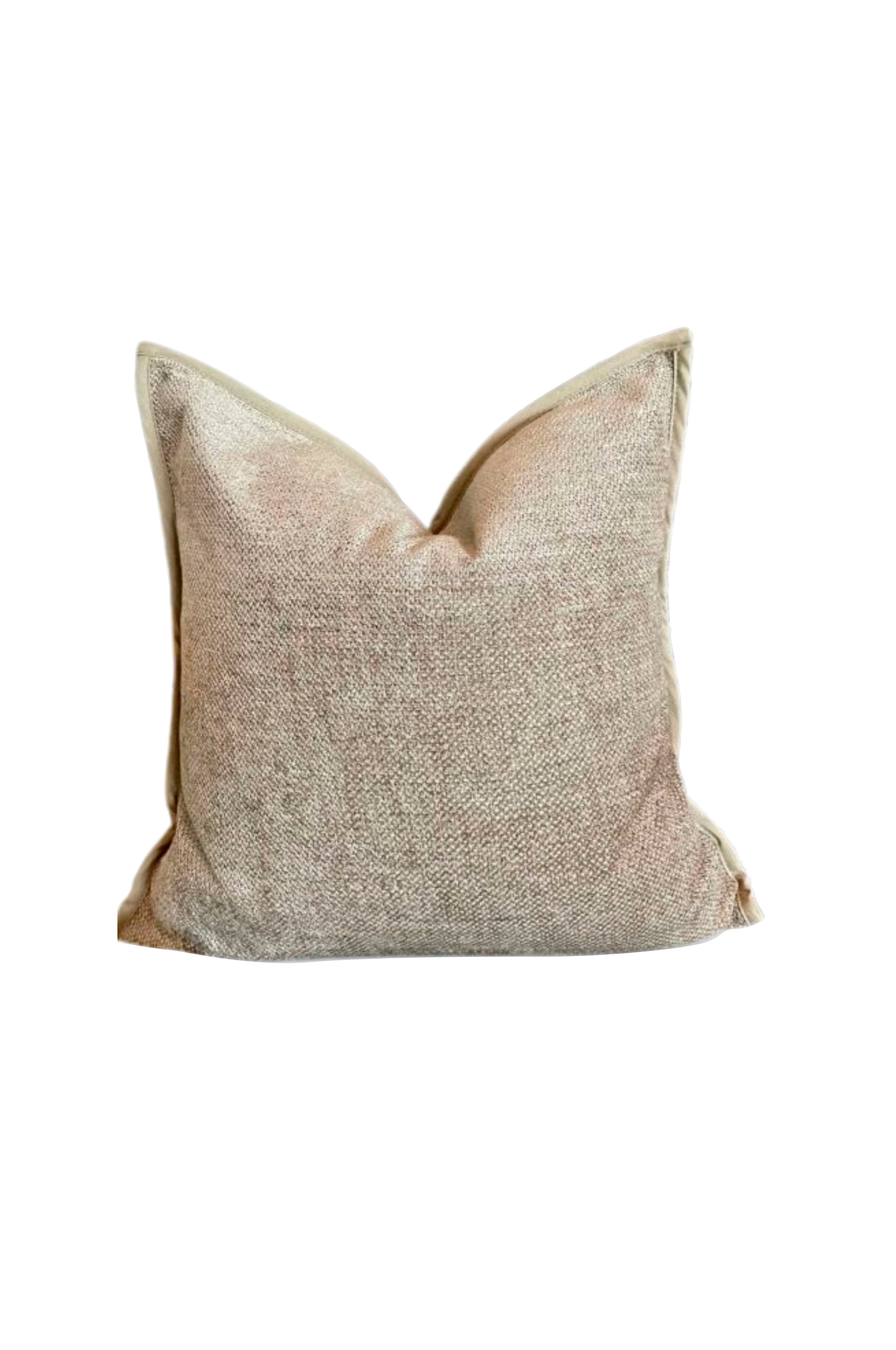 Kuddfodral i tjockt tyg med glansig finish och kantdekoration i polyester med linne-look.