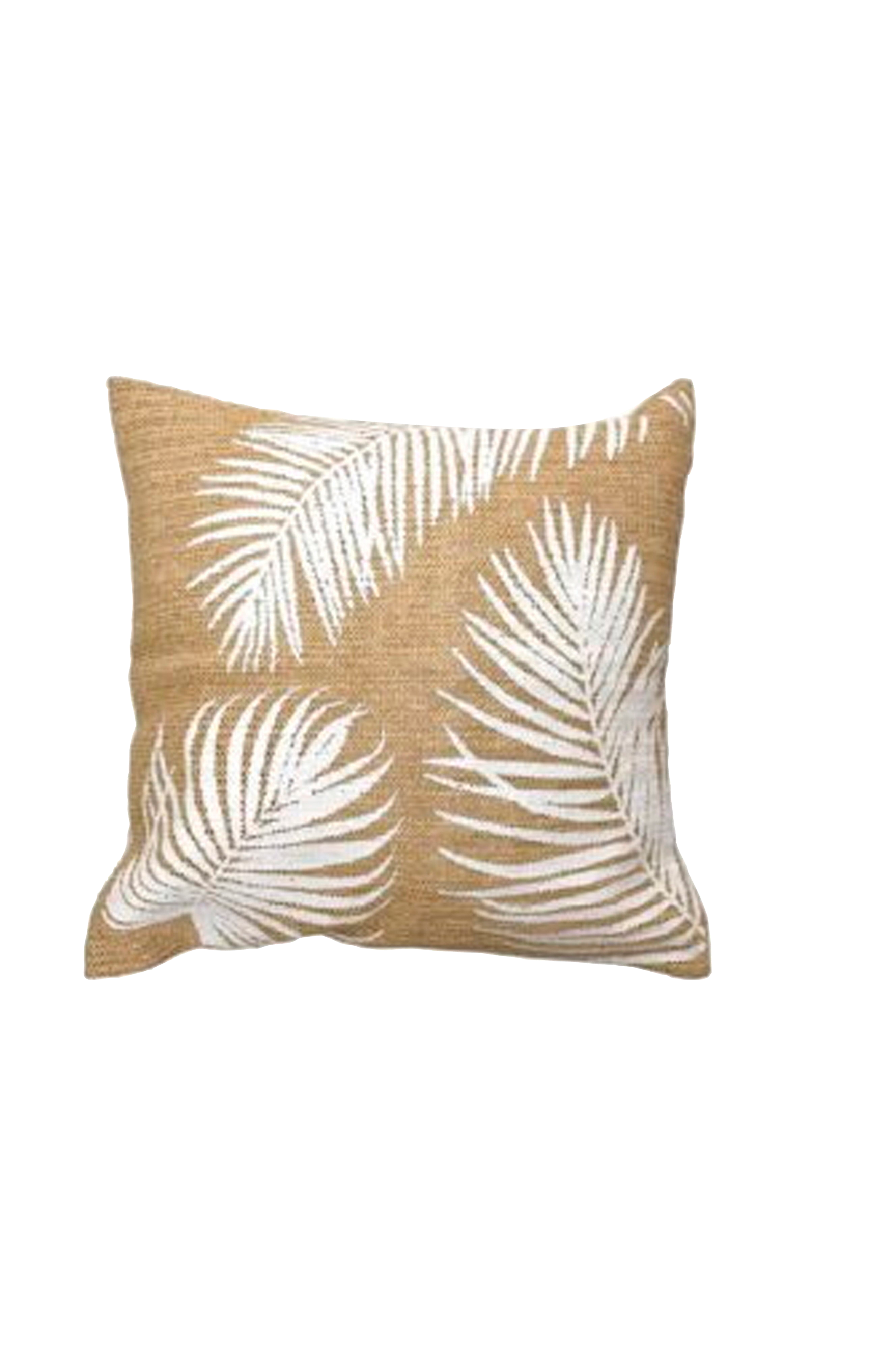 Kuddfodral med sommarkänsla. Slitstarkt material som kan användas utomhus. Fint mönster med palm blad.
