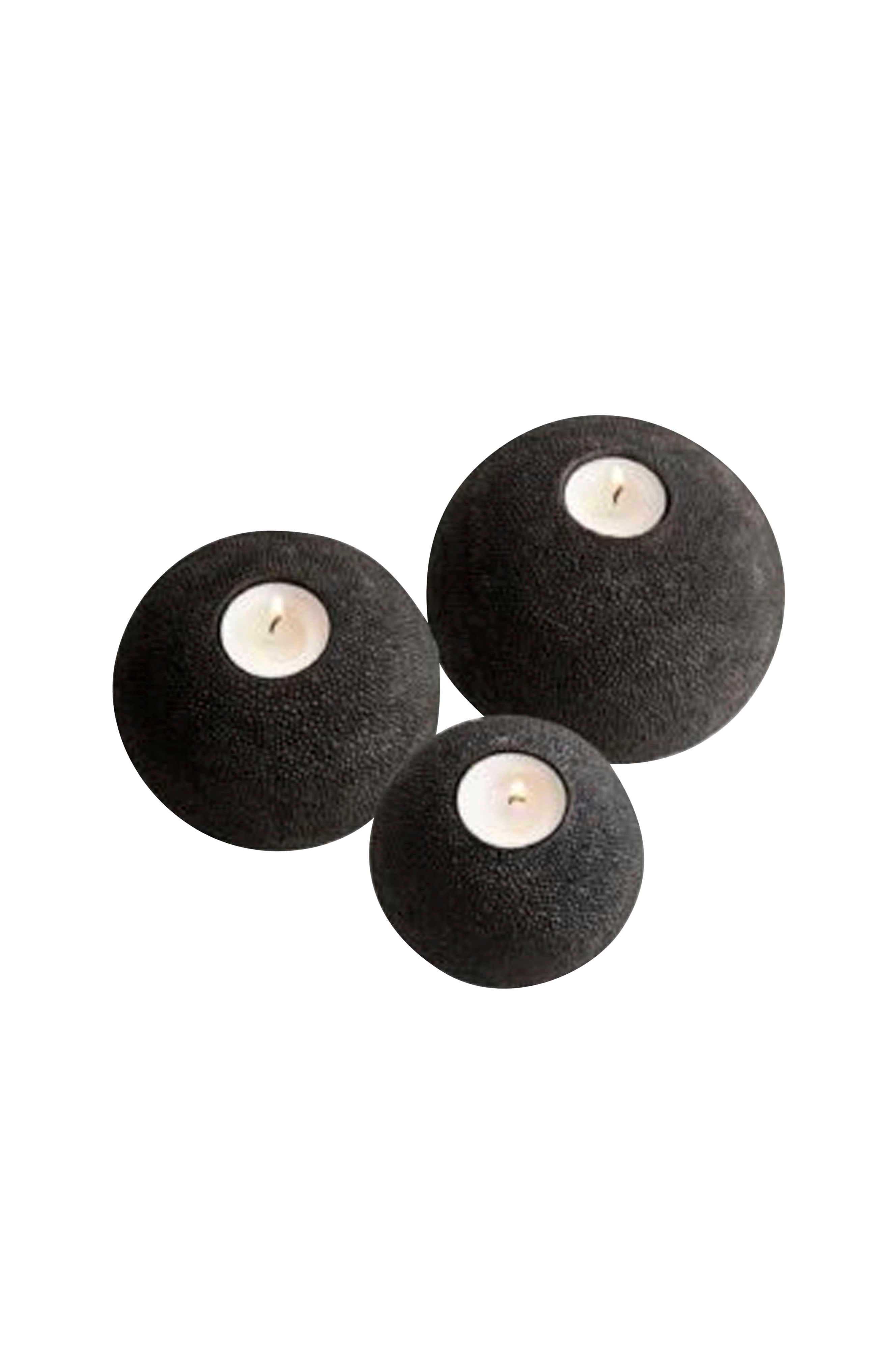 Set/3 klotformade ljusstakar tillverkade i tåligt polyresin.