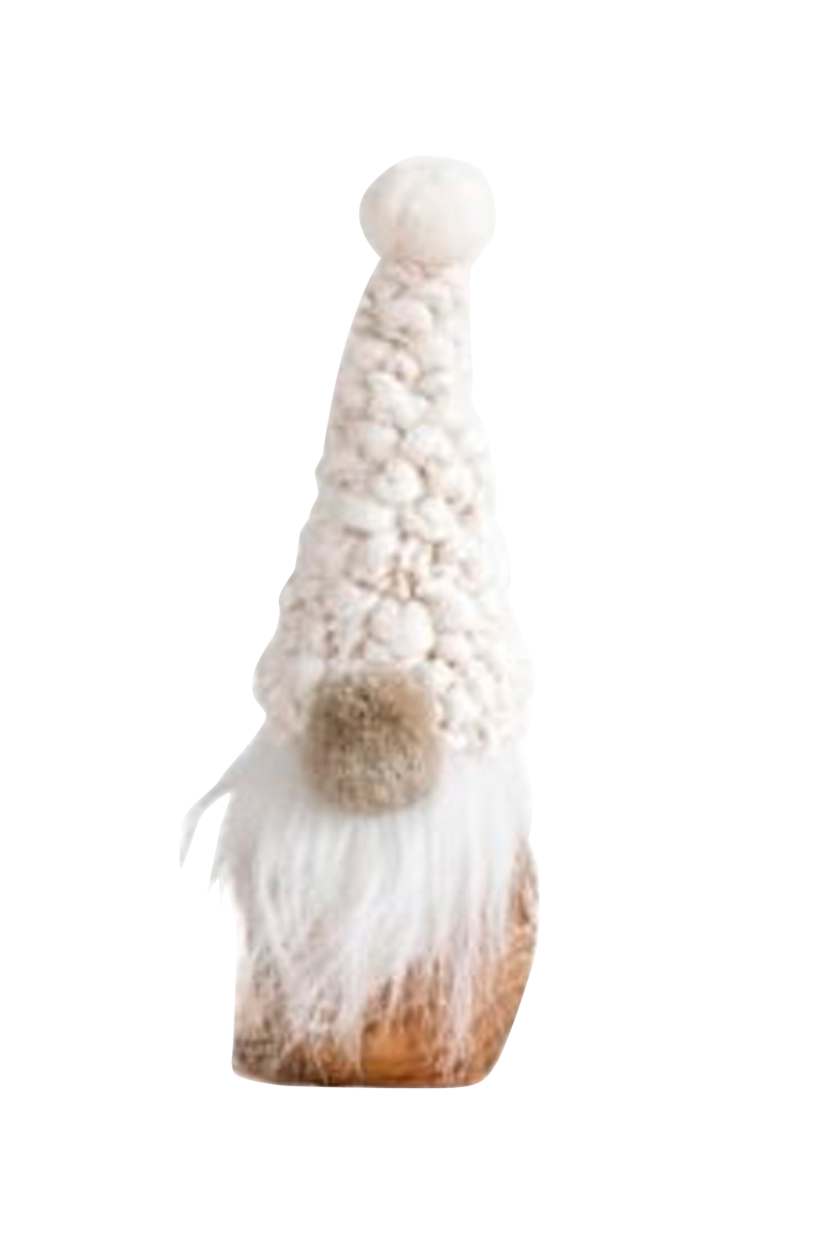 Söt santa med pälsmössa i naturfärger. Stabil fot i trä.