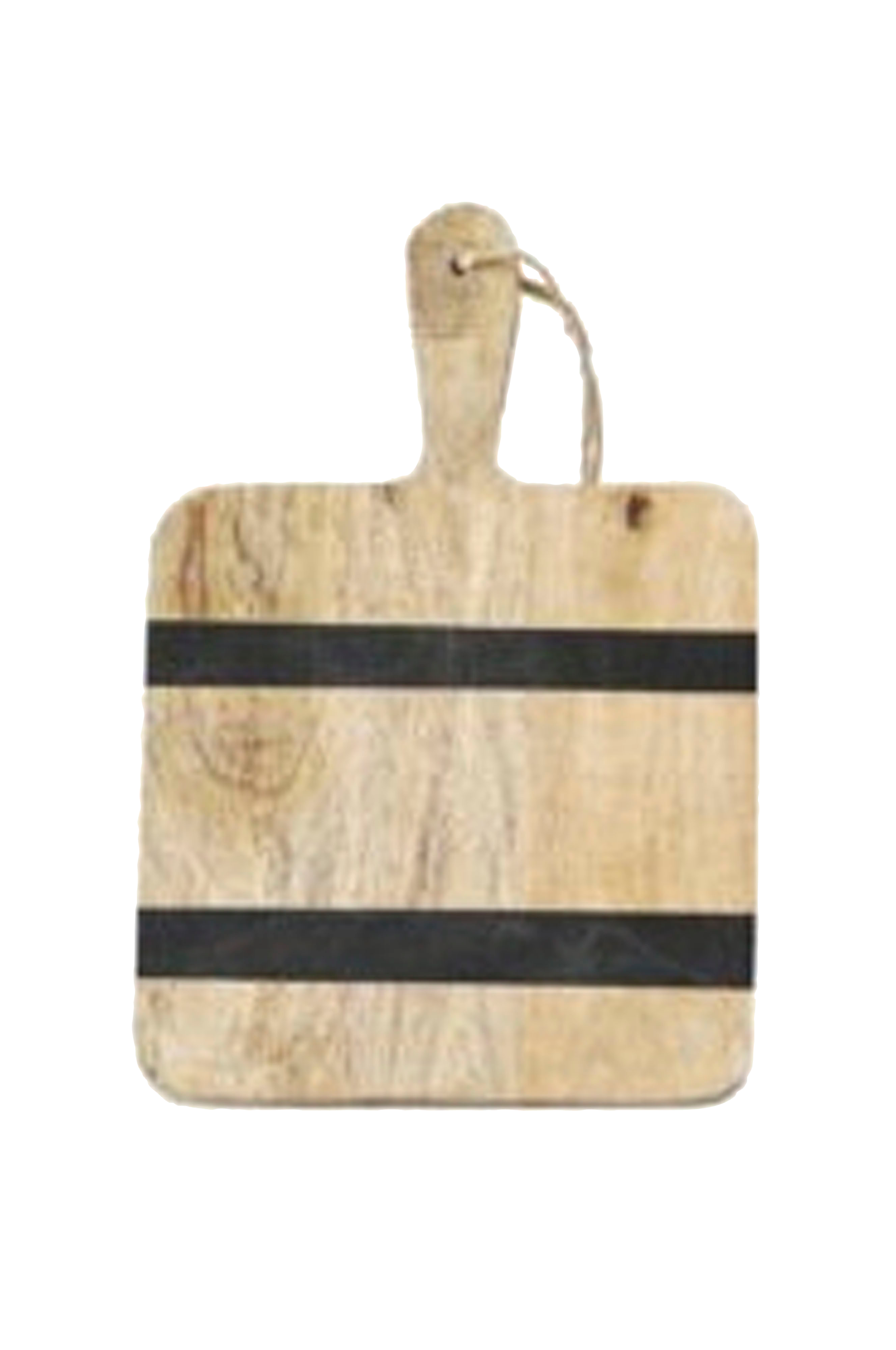 Serveringsbräda i trä med svarta ränder som är funktionell och vacker. Passar som charkbricka eller som en praktisk och fin skärbräda eller snygg att ha framme som dekoration.