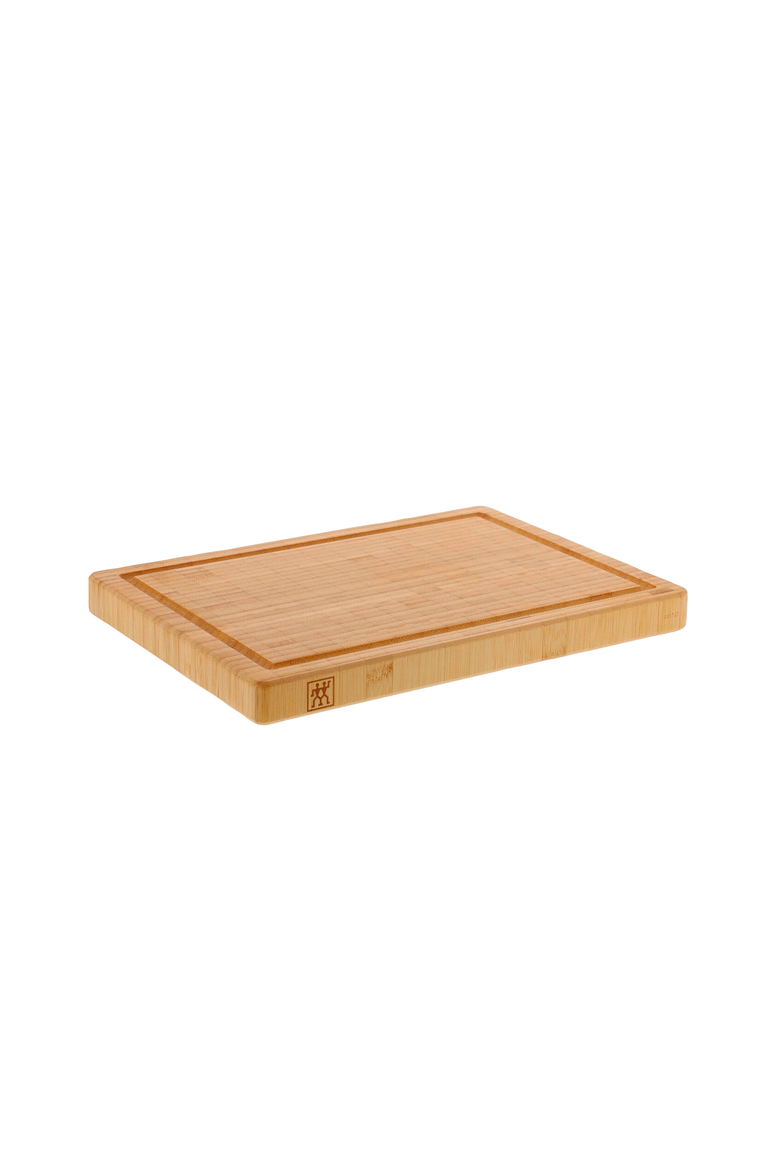 Stor skärbräda från Zwilling tillverkad av bambu för extra elasticitet. Brädan är hygienisk och lätt att rengöra. Den böjliga bambuytan är idealisk för att skydda eggen vid skärning så den förblir vass länge. Skärbrädan har också ett spår för att samla fett och juice när man skär kött för att förhindra att det rinner ner på diskbänken eller bordet.
